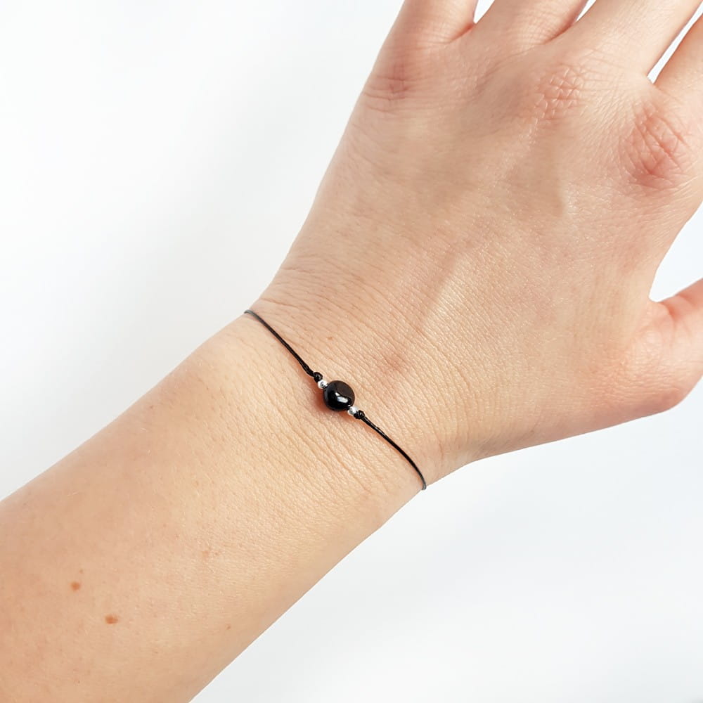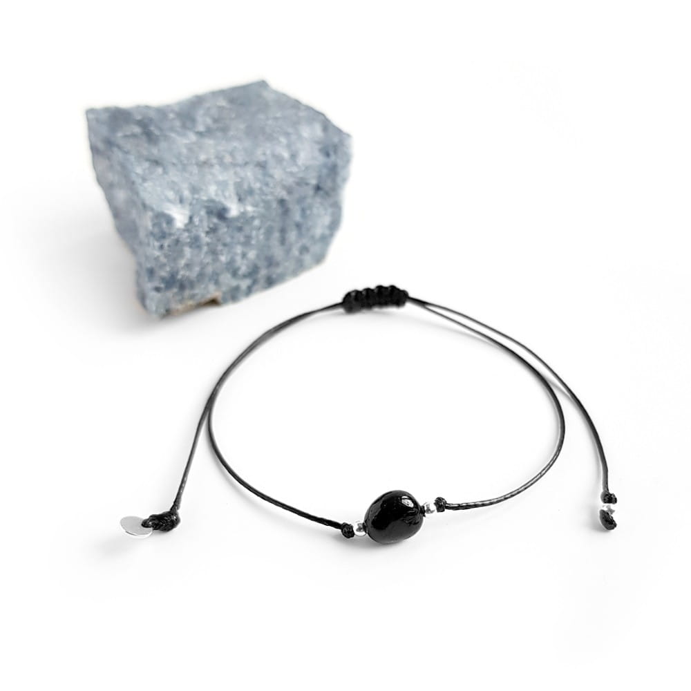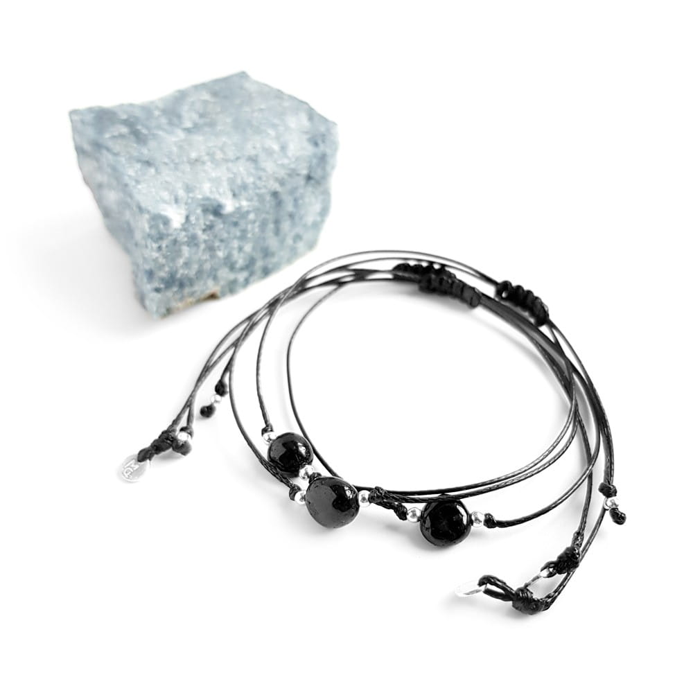 Bransoletka wykonana z kamienia naturalnego - czarnego turmalinu, elementów srebra p.925 oraz nylonowego sznureczka.