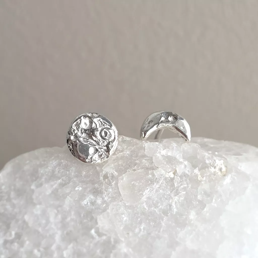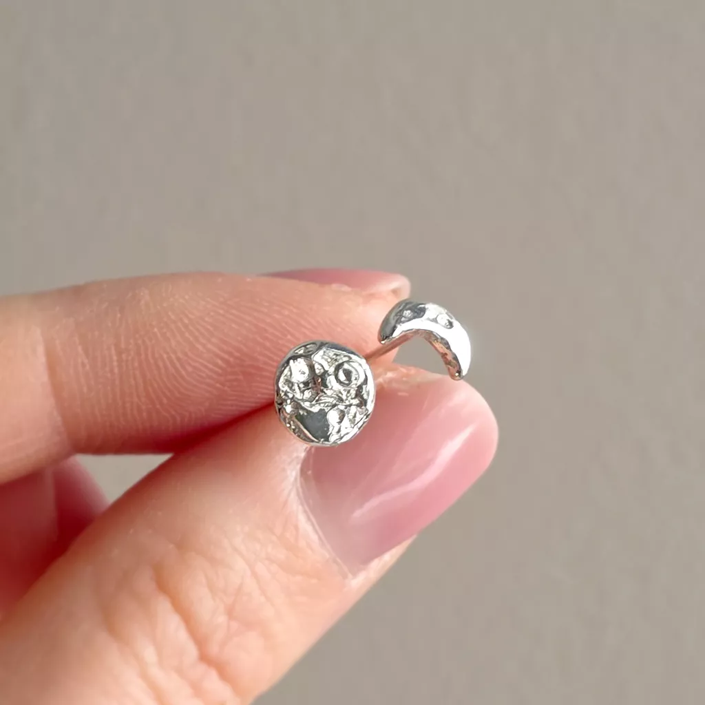 Technika: księżyc wyrzeźbiony ręcznie w pracowni MaM Magdalena Michalak metodą traconego wosku. Odlany w srebrze i obrobiony przy użyciu tradycyjnych technik jubilerskich.