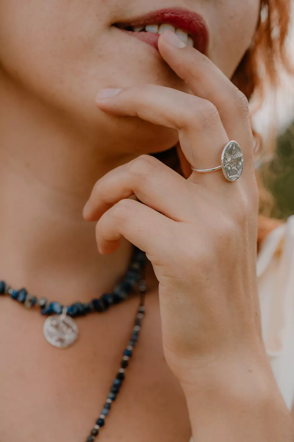Pełnia księżyca to moment, w którym kobieca energia rozkwita najpełniej. Symbol ten wspiera intuicję, wewnętrzną mądrość i poczucie spełnienia. Przypomina, że jesteś kompletna taka, jaka jesteś, a Twoje światło ma w sobie moc prowadzenia Ciebie i innych. To talizman cykliczności i zaufania do naturalnego rytmu życia.