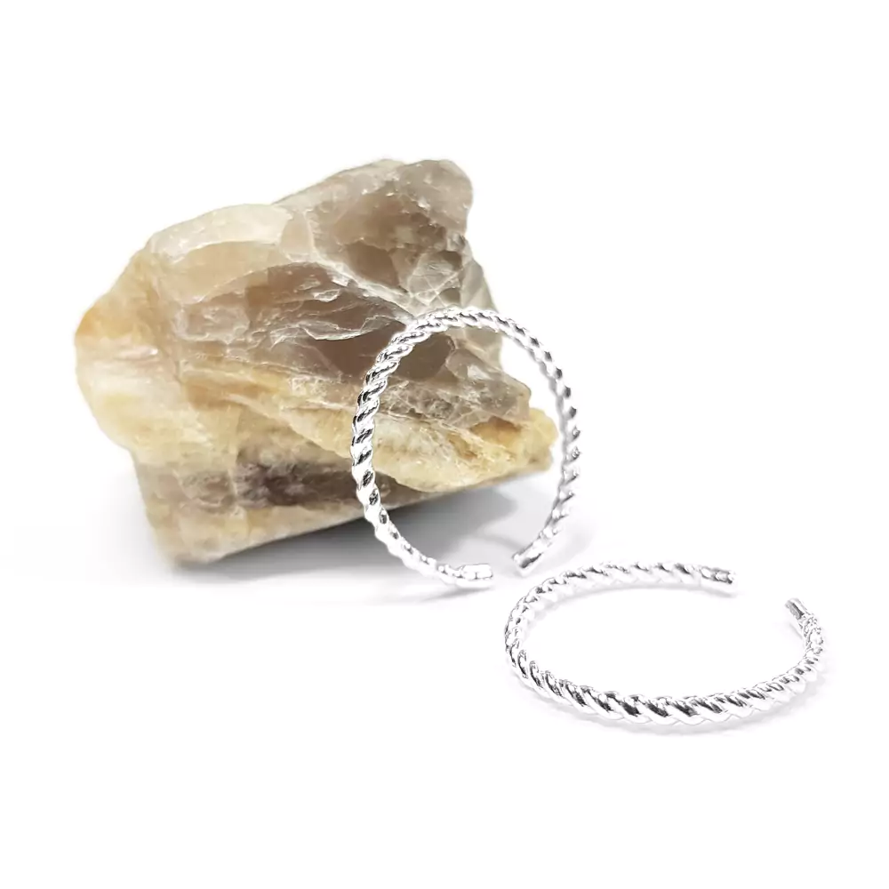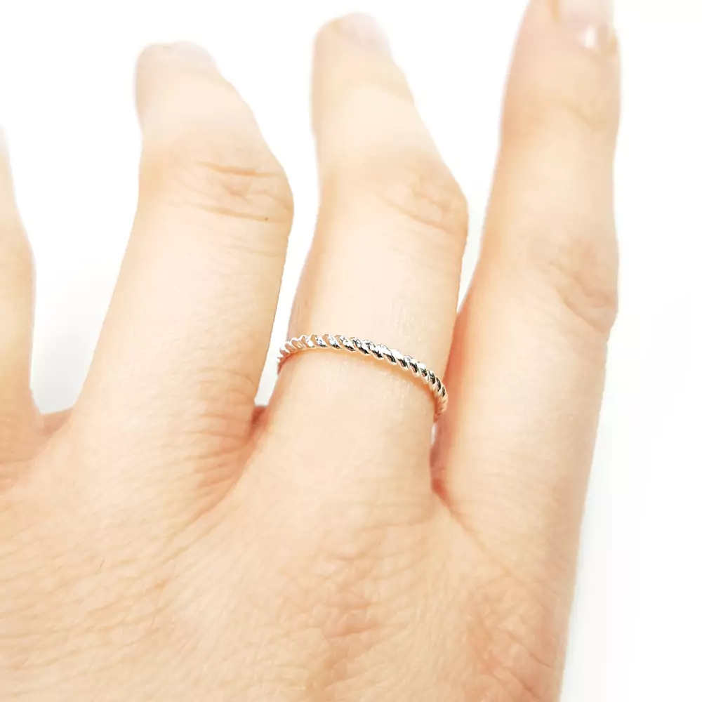 Pierścionek wykonany ze srebra p.925, w formie skręcanego drutu.