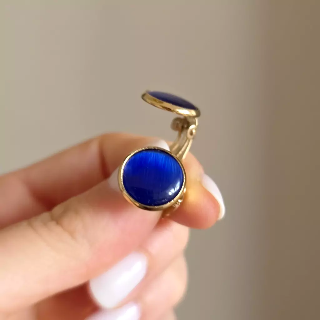 Klipsy kobaltowe kocie oko