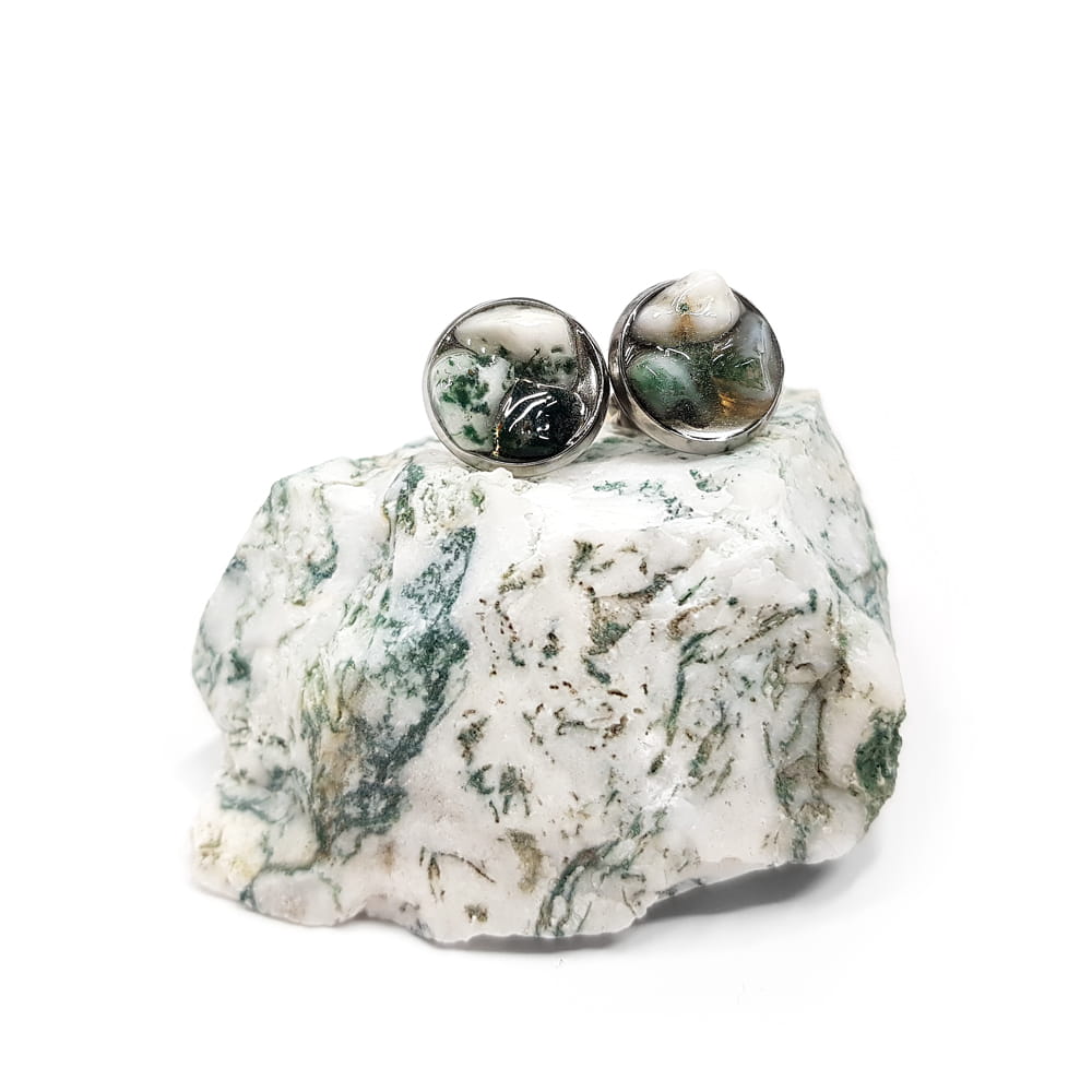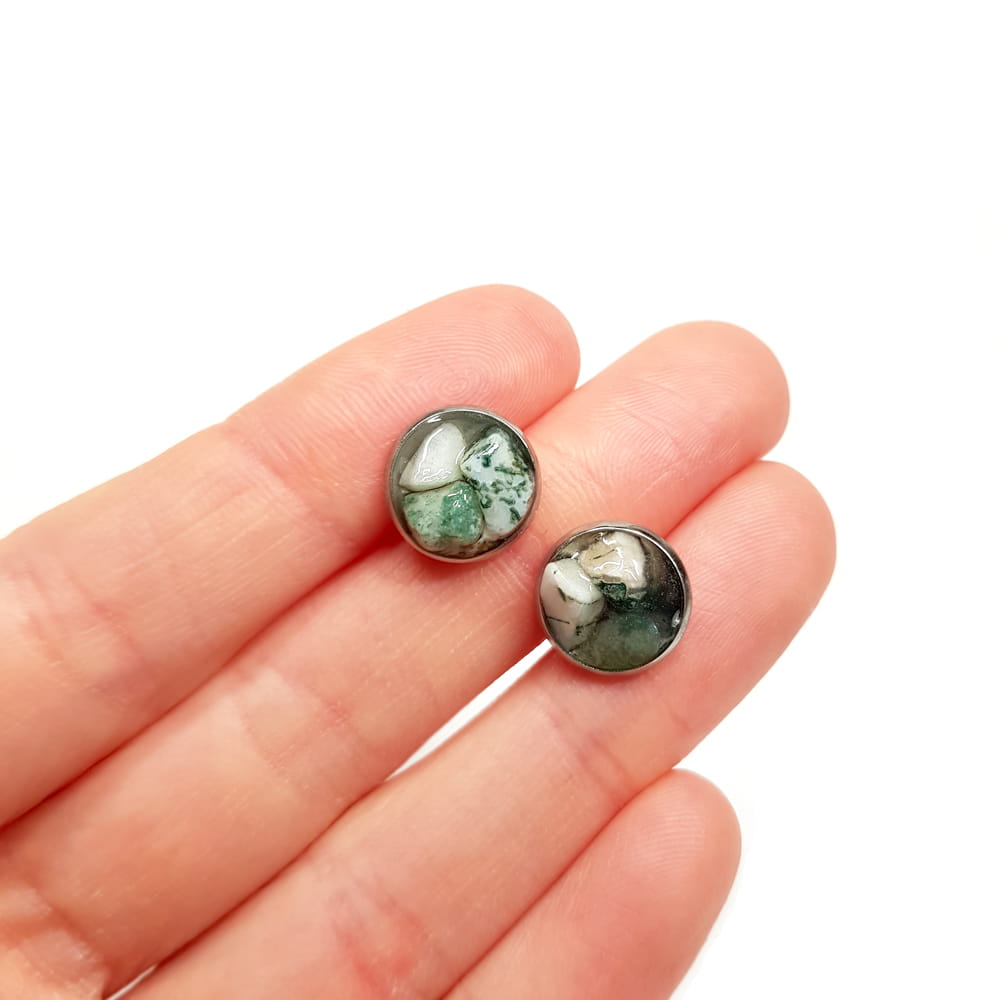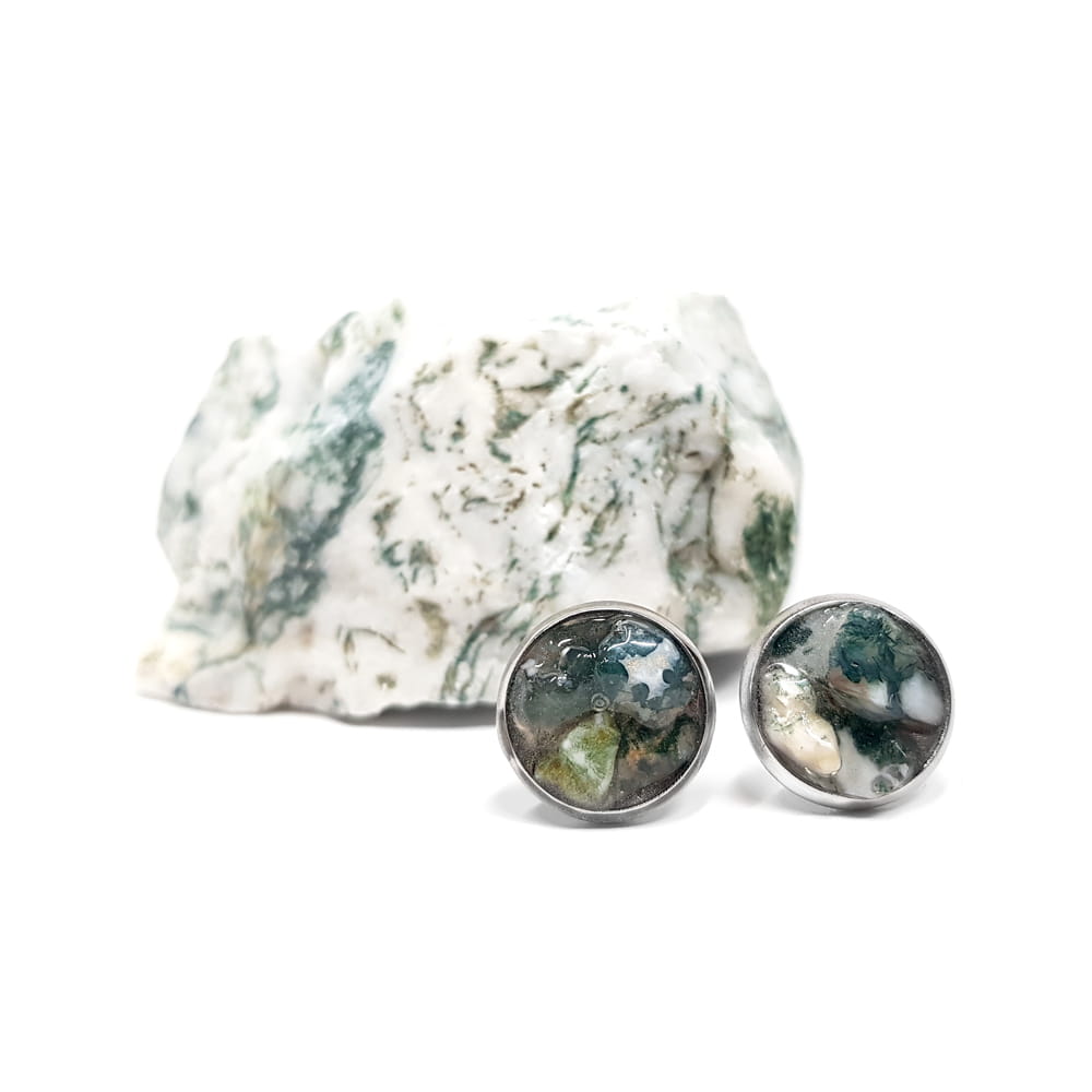 Kolczyki sztyfty agat mszysty w żywicy stal chirurgiczna Sparkles moss