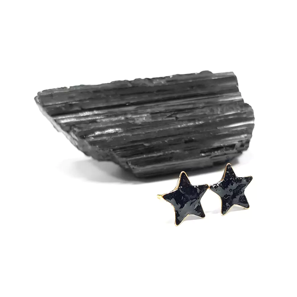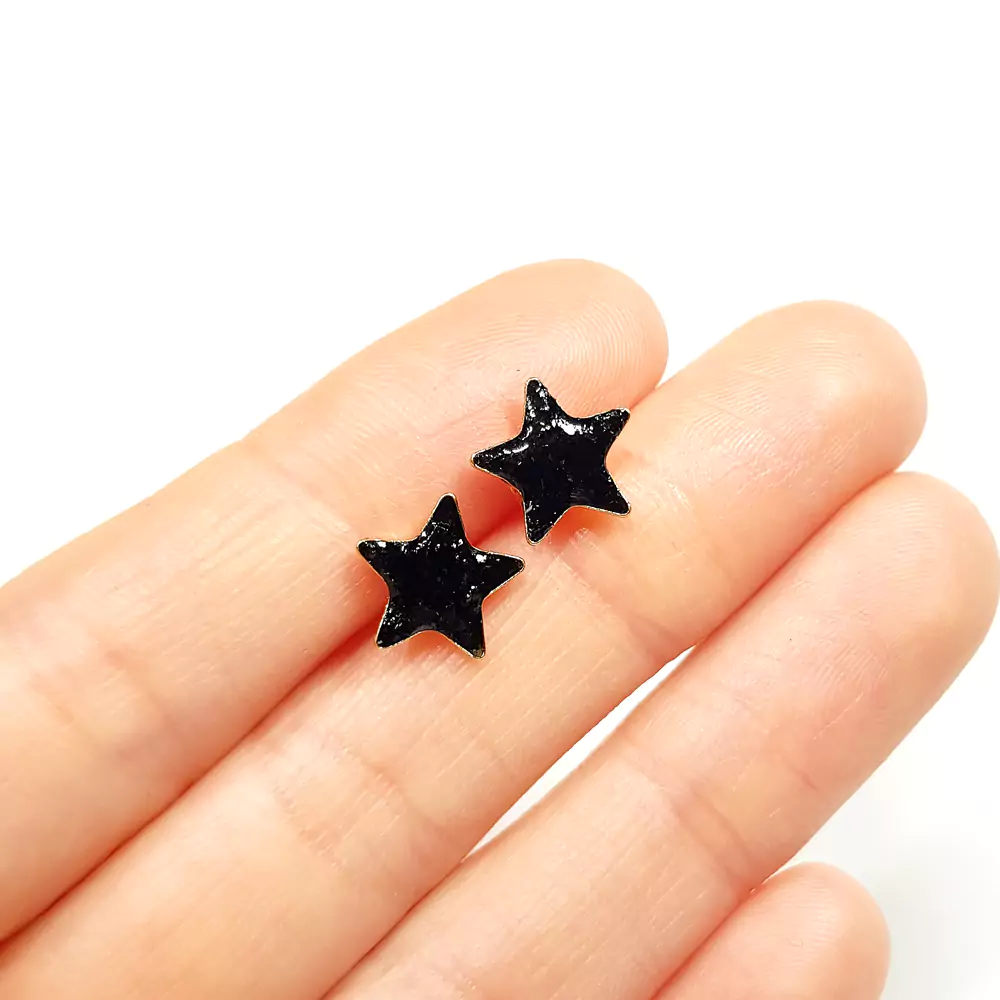 Kolczyki sztyfty gwiazdki czarny turmalin w żywicy pozłacane srebro p.925 Sparkles black