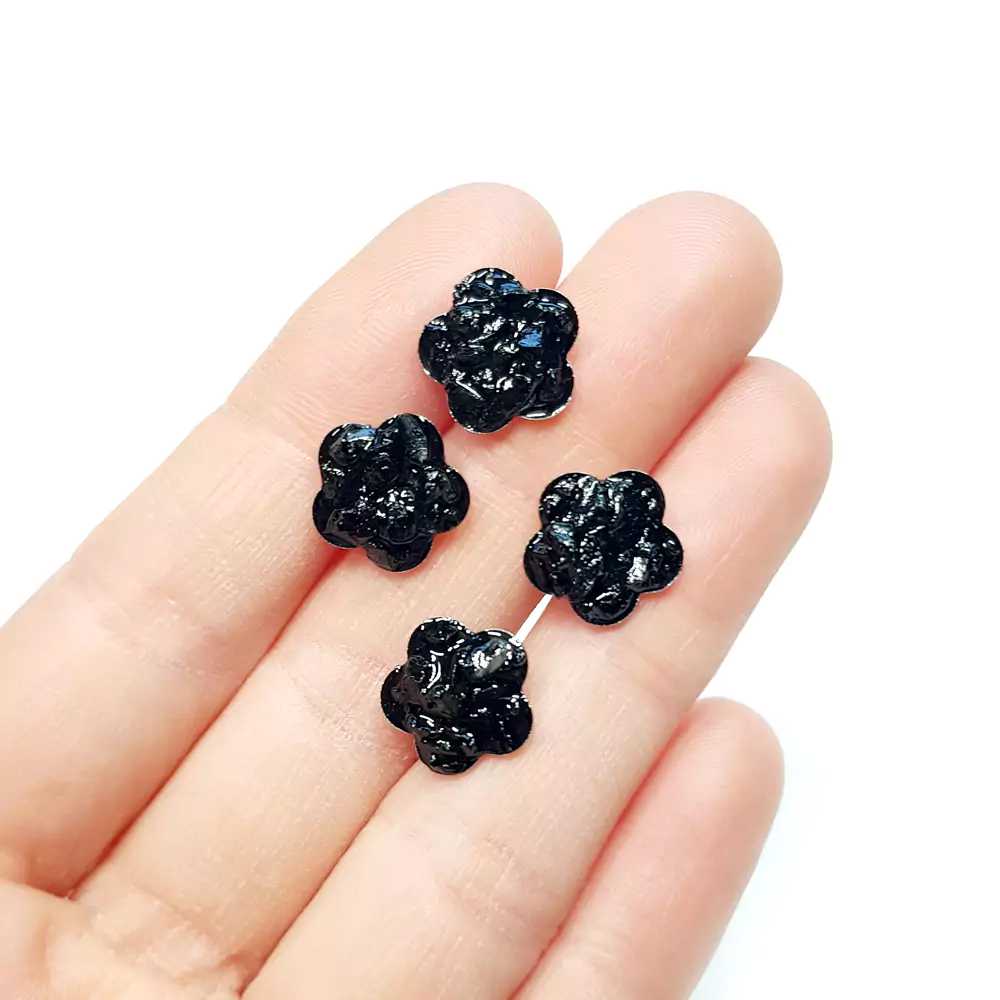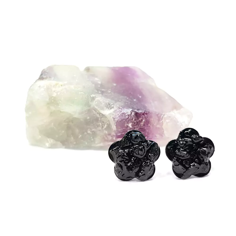Kolczyki sztyfty kwiatki czarny turmalin w żywicy stal chirurgiczna Sparkles black