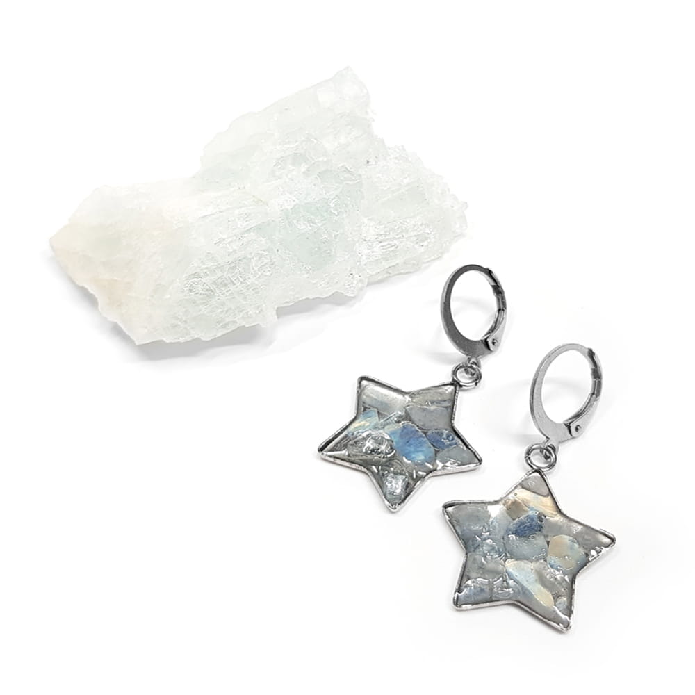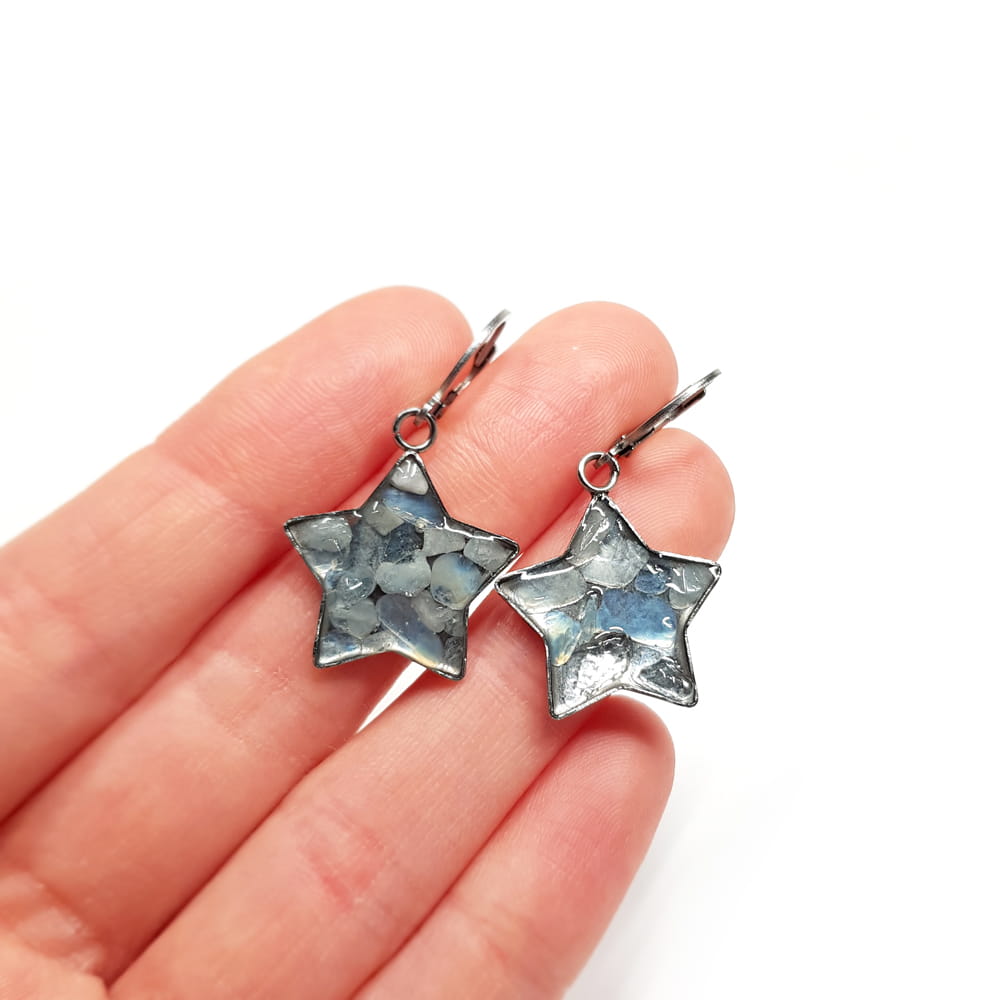 Kolczyki wiszące gwiazdki akwamaryn w żywicy stal chirurgiczna Sparkles aquamarine