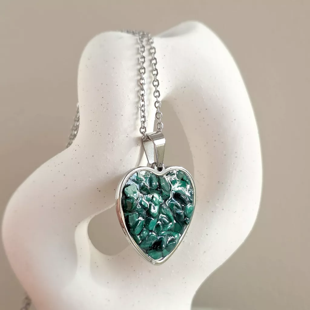 Naszyjnik malachit w żywicy serce stal chirurgiczna Sparkles malachite