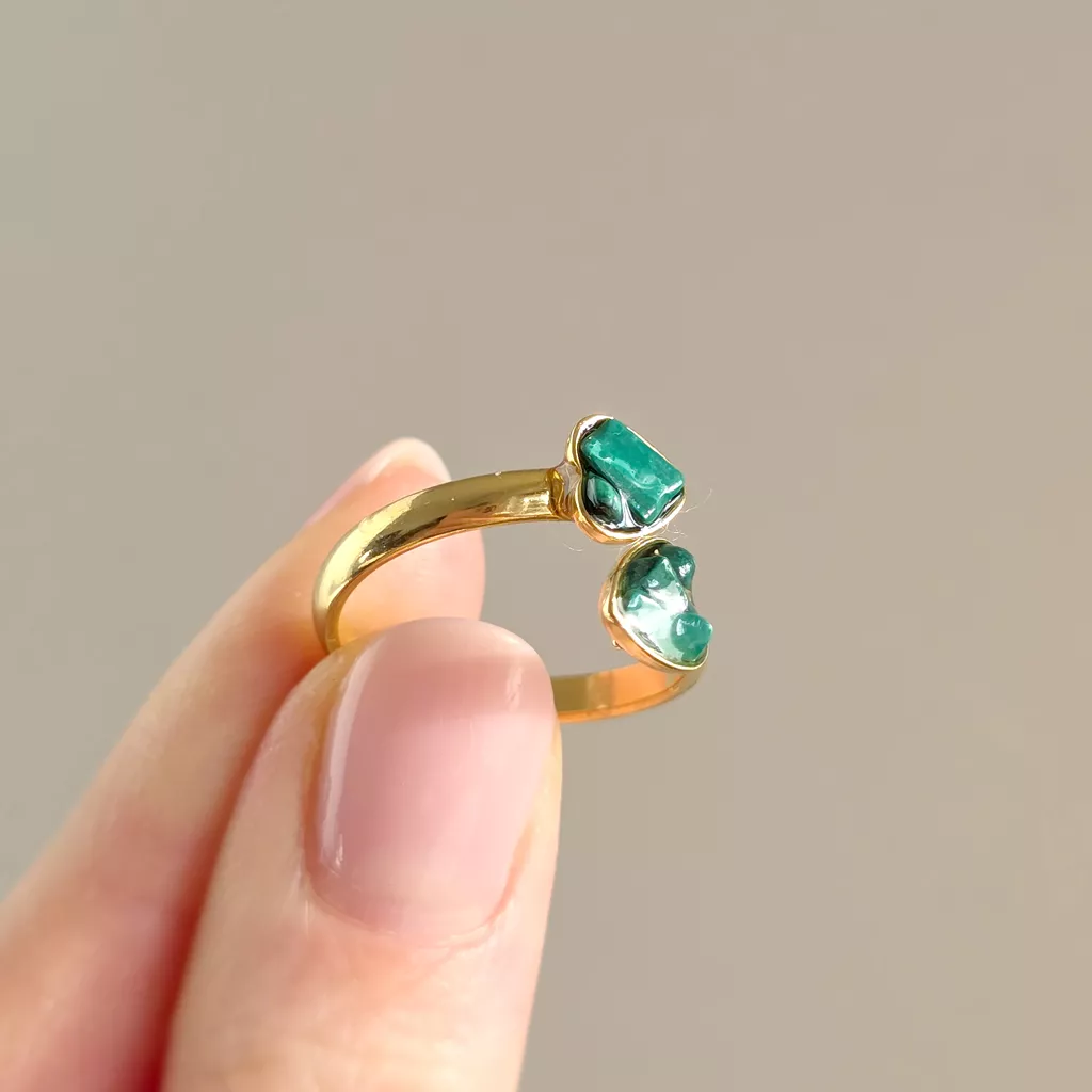 Pierścionek klasyczny złote serca malachit w żywicy Sparkles malachite