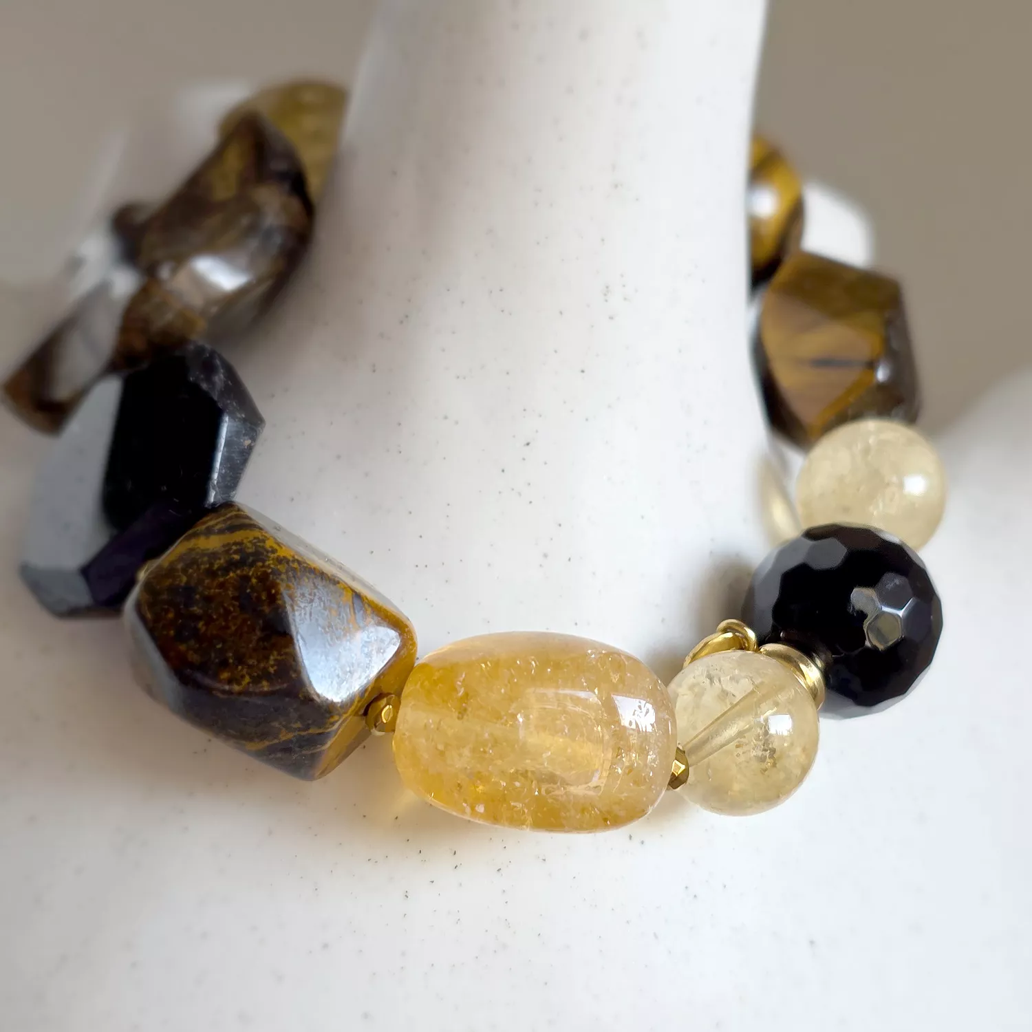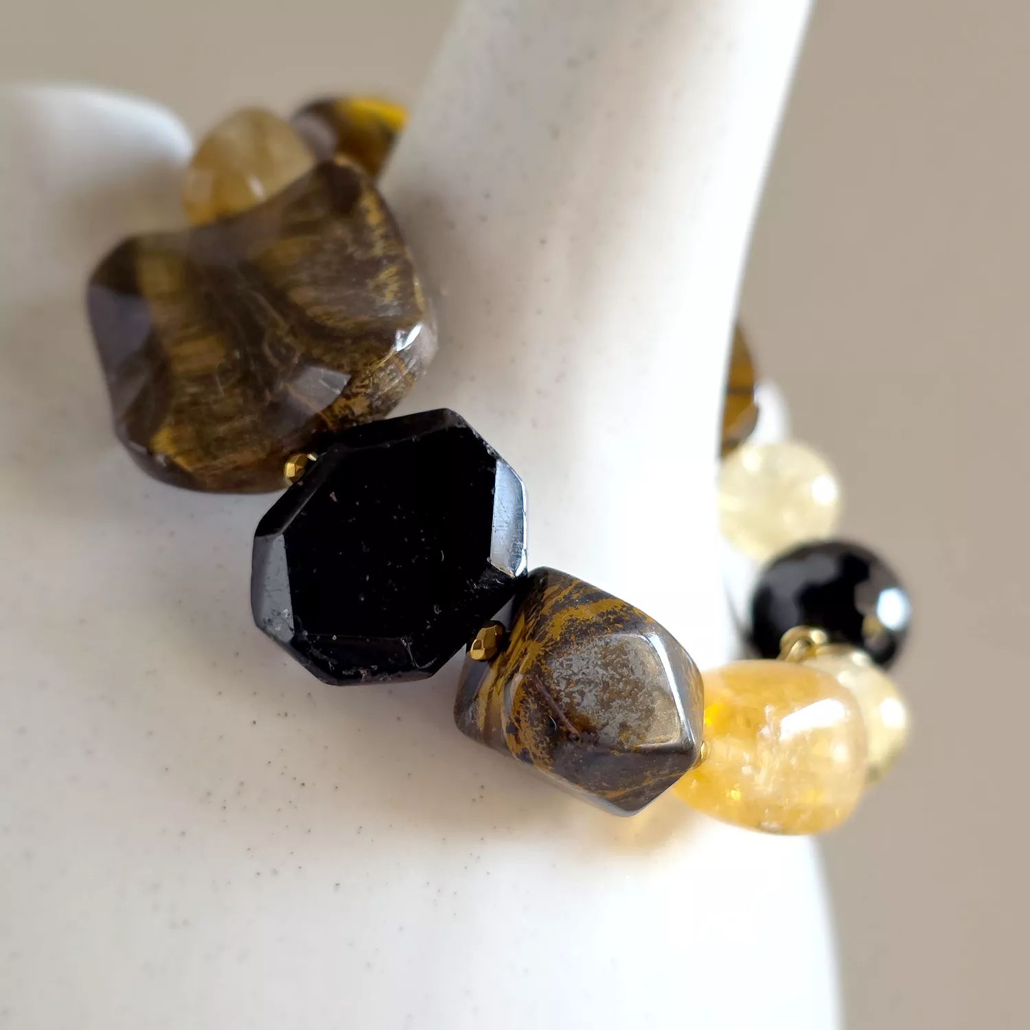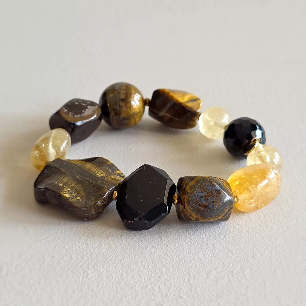 Bohemian bransoletka unikat cytryn, tygrysie oko, czarny turmalin i hematyt