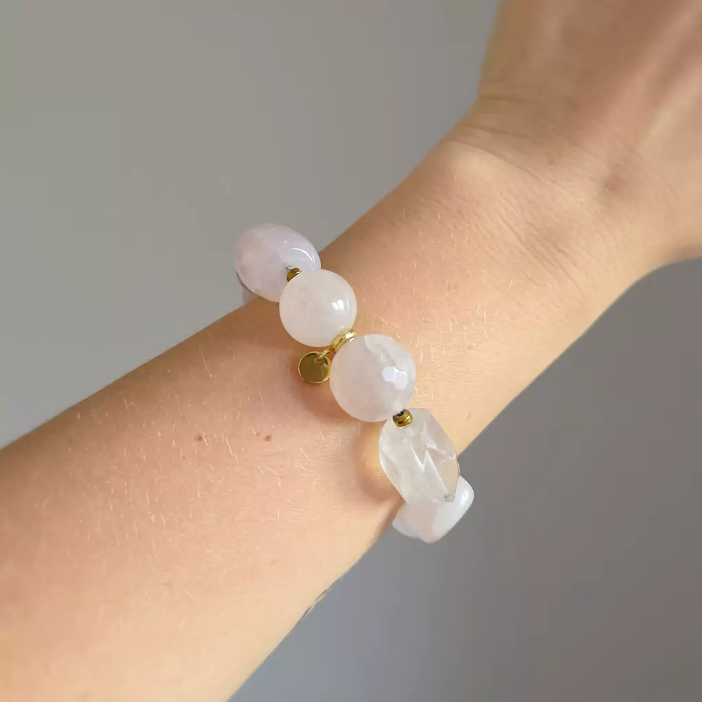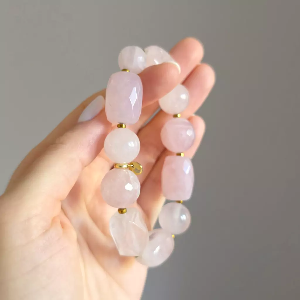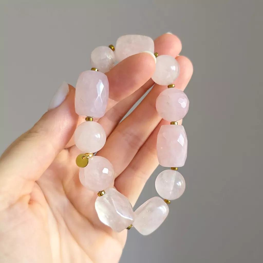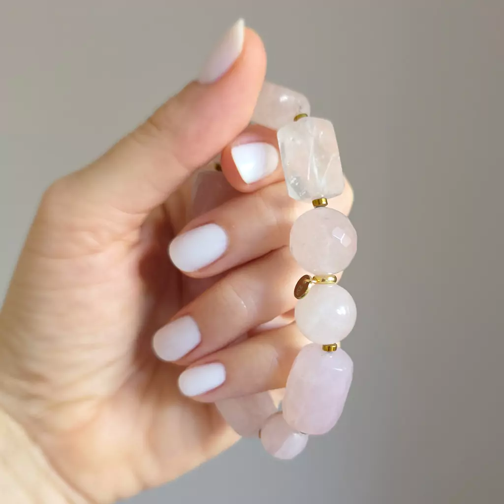 Kwarc różowy to kamień miłości i harmonii. Jego energia promuje uczucia miłości własnej i empatii w relacjach międzyludzkich. Jest kamieniem serca, który łagodzi napięcia emocjonalne i wzmacnia więzi rodzinne oraz przyjaźń. Kwarc różowy wspomaga procesy uzdrawiania emocjonalnego, wspierając w przezwyciężaniu traum i rozczarowań. Jest również kamieniem spokoju i wewnętrznej równowagi, poprawiając jakość snu i redukując stres. Jego delikatna energia otwiera serce na przyjmowanie miłości i dobroci.