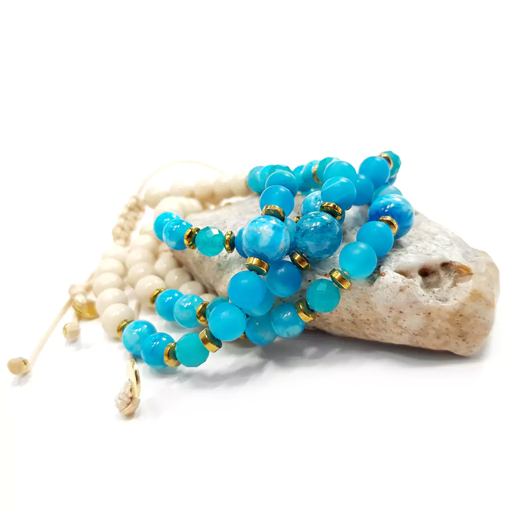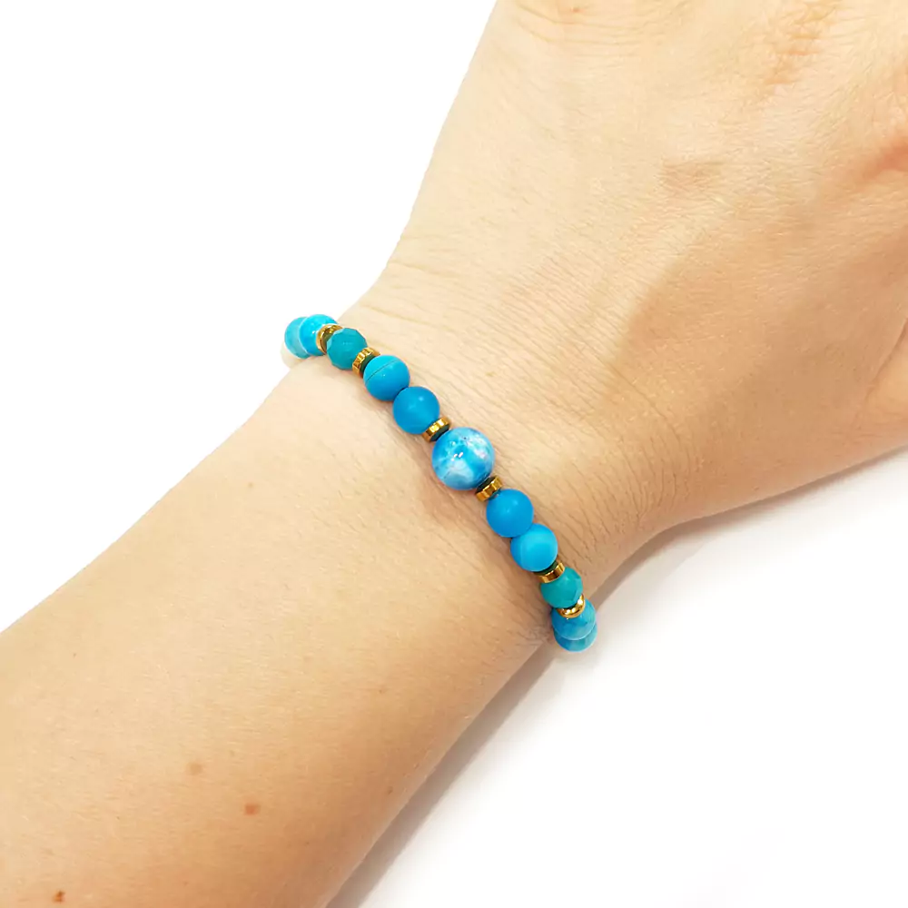 Pebbles damska bransoletka apatyt, agat niebieski, kwarc niebieski, kamień rzeczny i hematyt