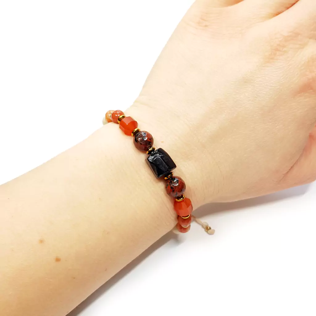 Pebbles damska bransoletka czarny turmalin, jaspis czerwony, karneol, agat, kamień rzeczny i hematyt