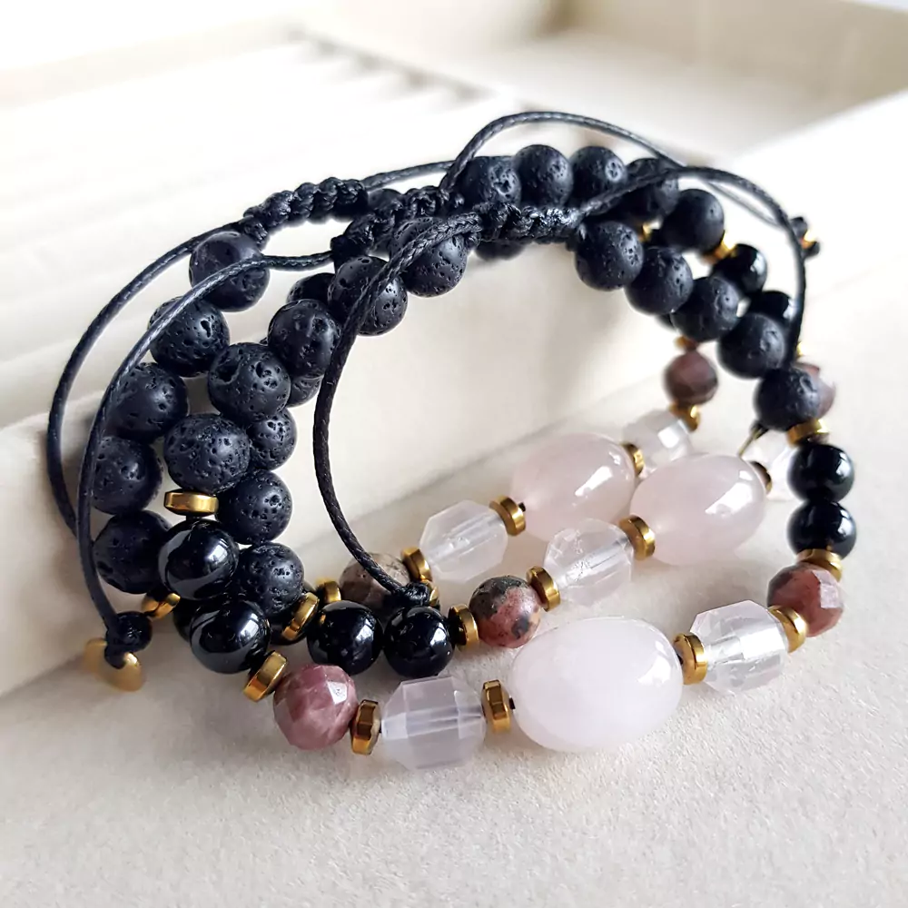 | Rodzaj kamienia: | Kwarc różowy, Rodochrozyt, Czarny turmalin, Lawa wulkaniczna, Hematyt |