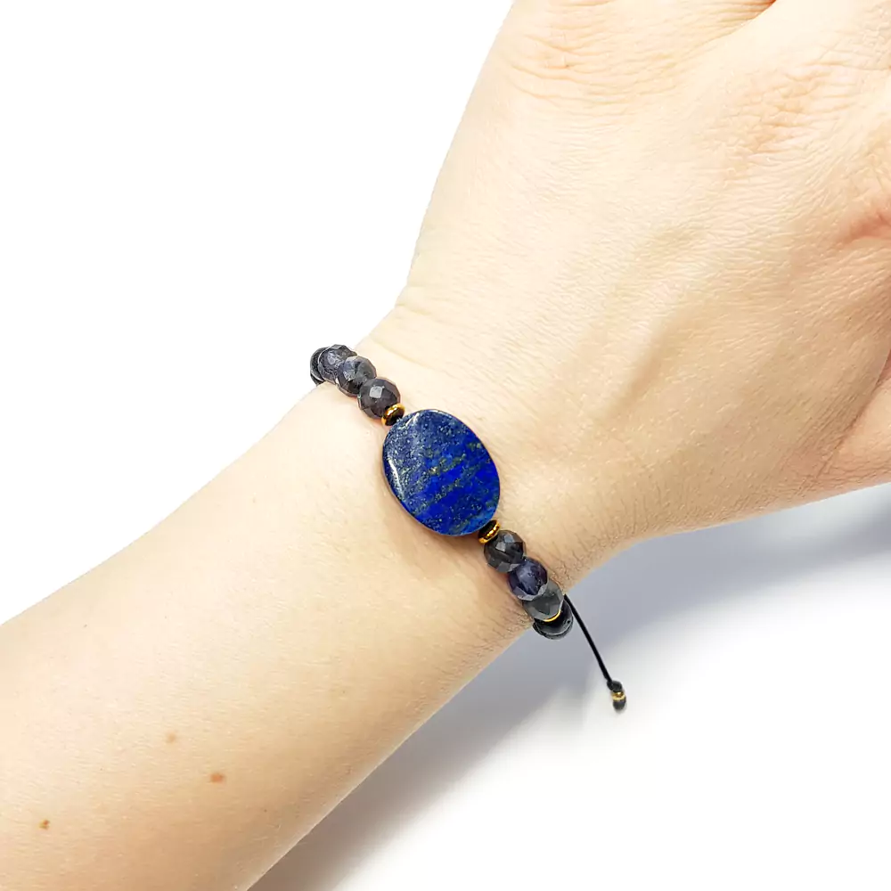 Pebbles x Balance damska bransoletka lapis lazuli, iolit, lawa wulkaniczna i hematyt - czakra trzeciego oka