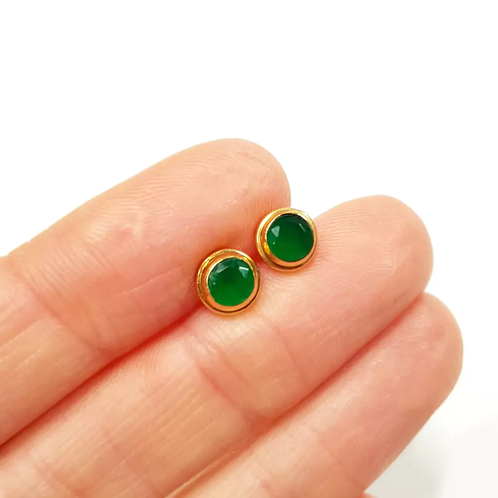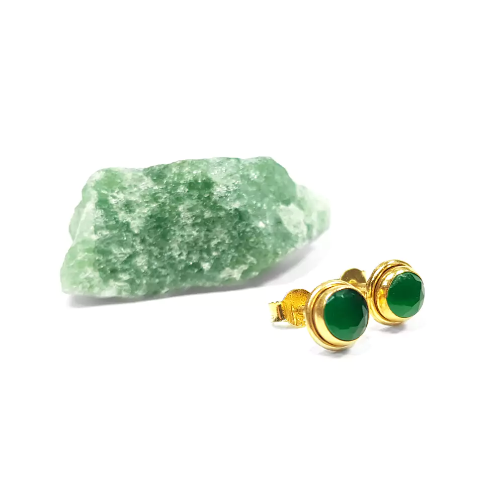 Kolczyki sztyfty zielony agat w pozłacanym okuciu srebro p.925