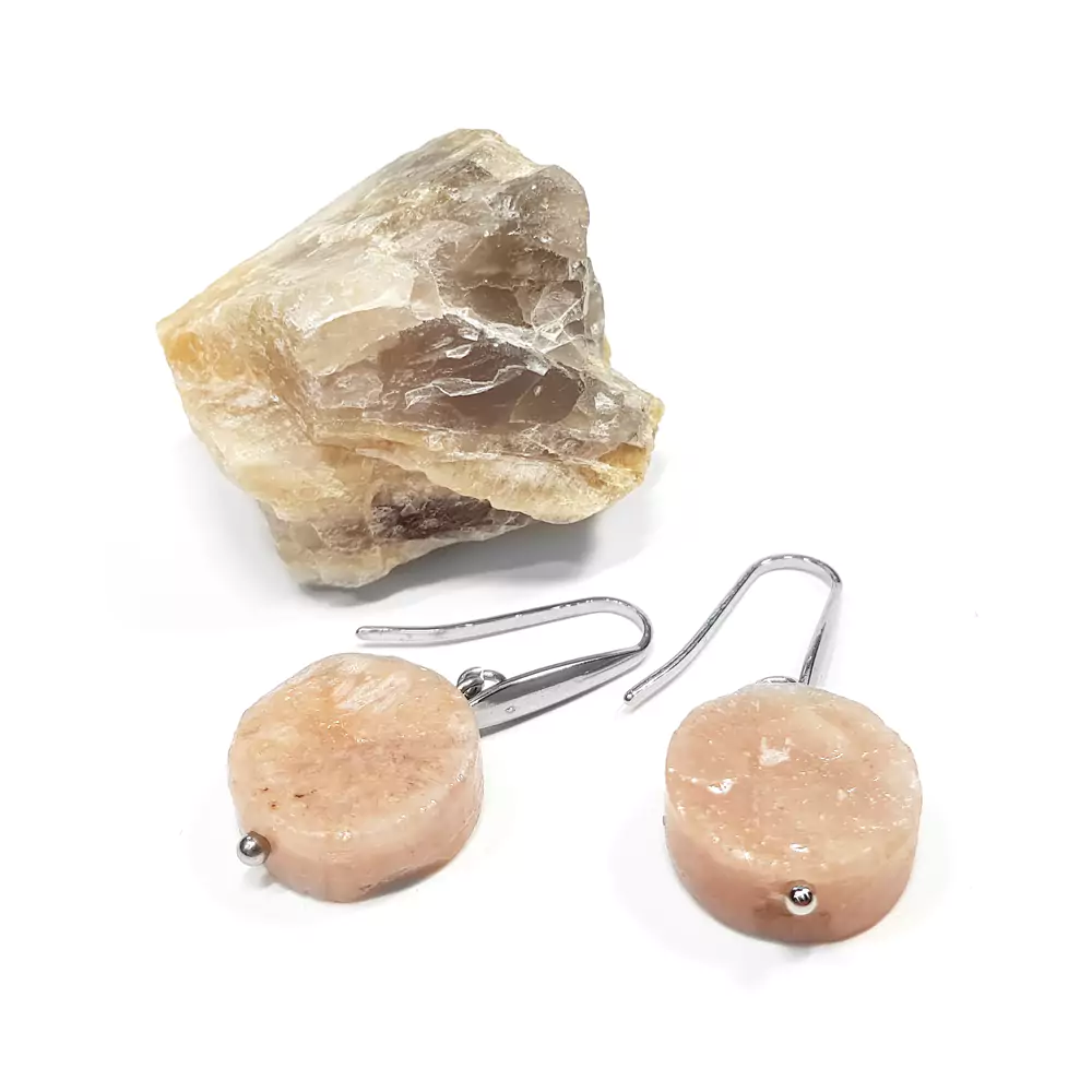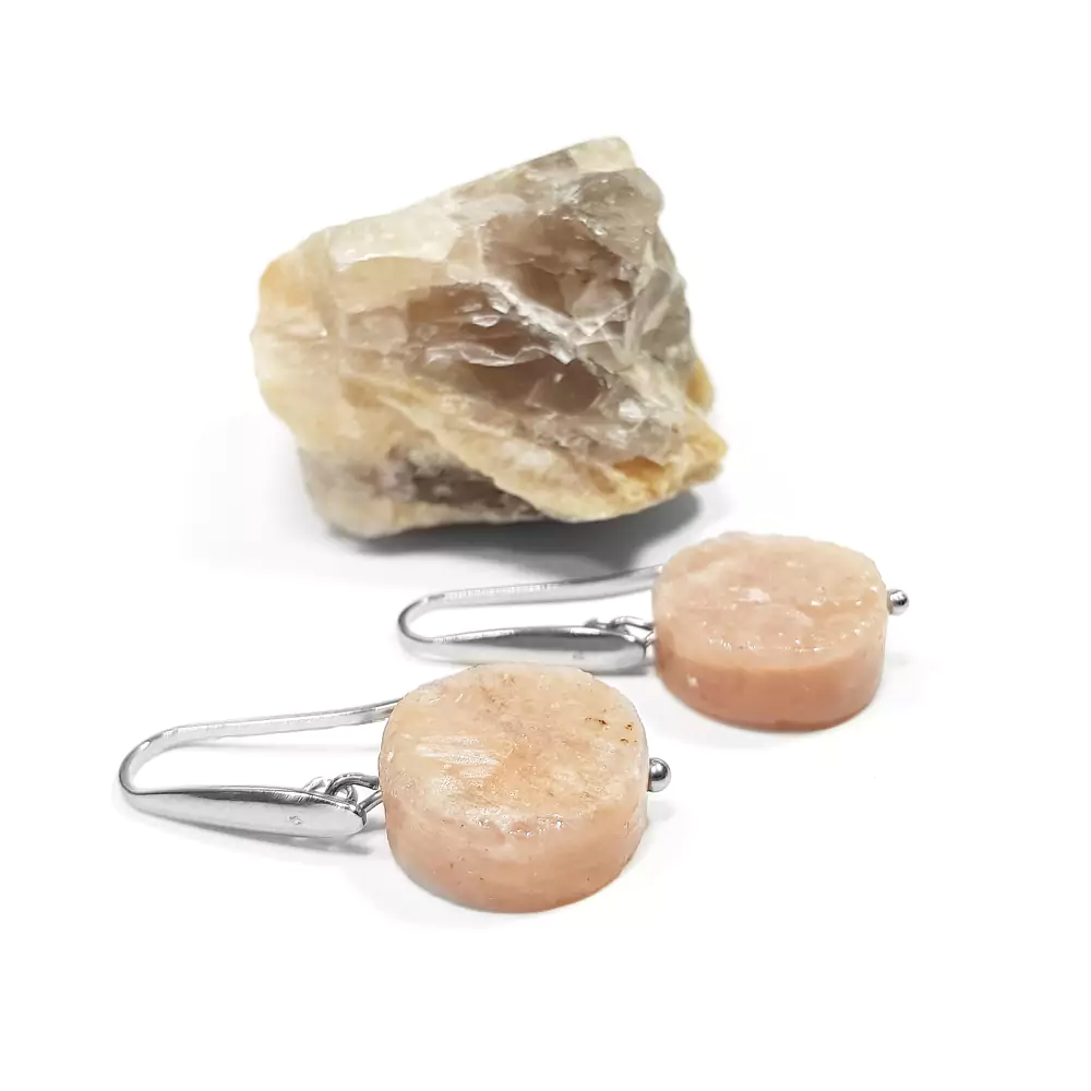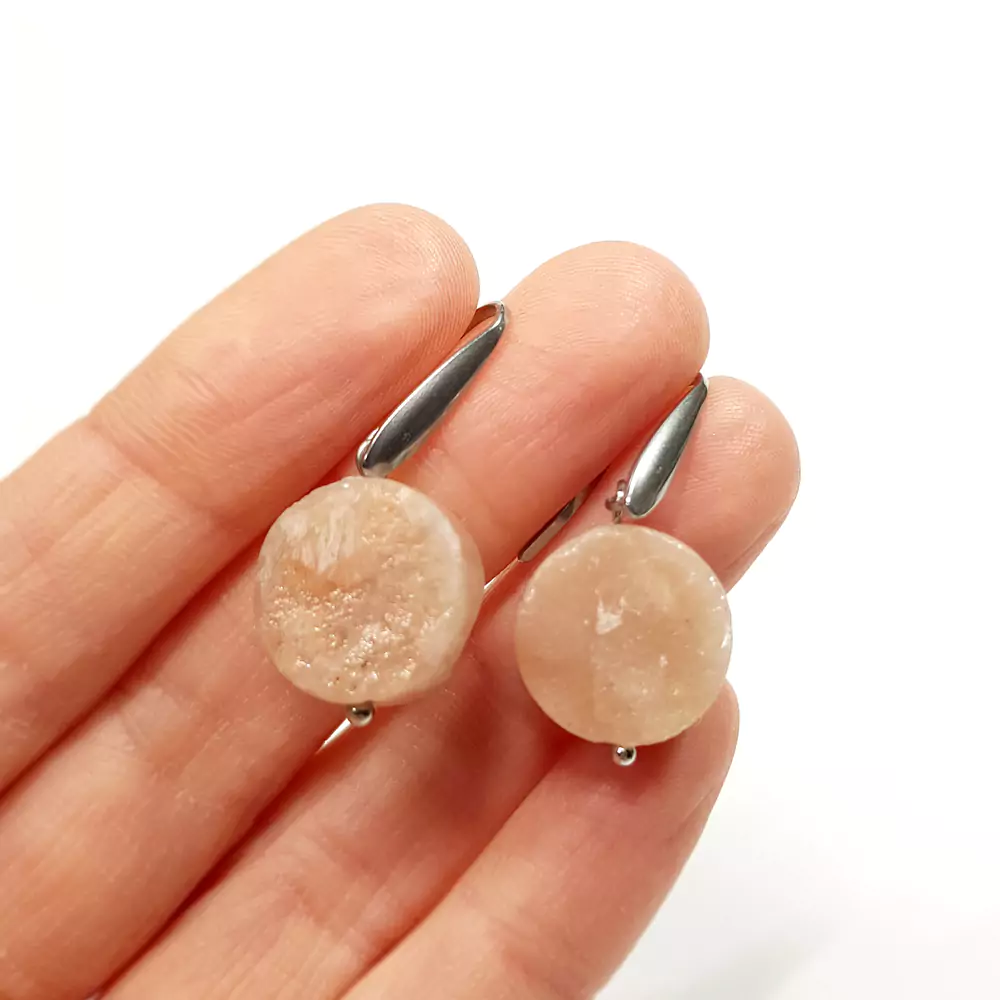 Kolczyki wiszące unikaty kamień słoneczny ciosane monety i stal chirurgiczna
