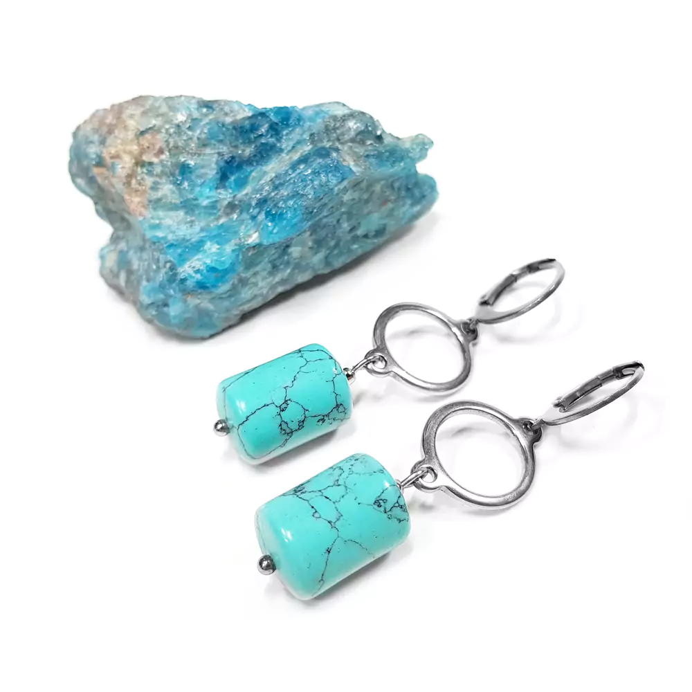 Kolczyki wiszące unikaty niebieski magnezyt i stal chirurgiczna