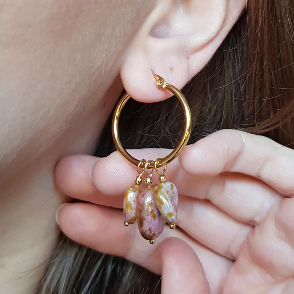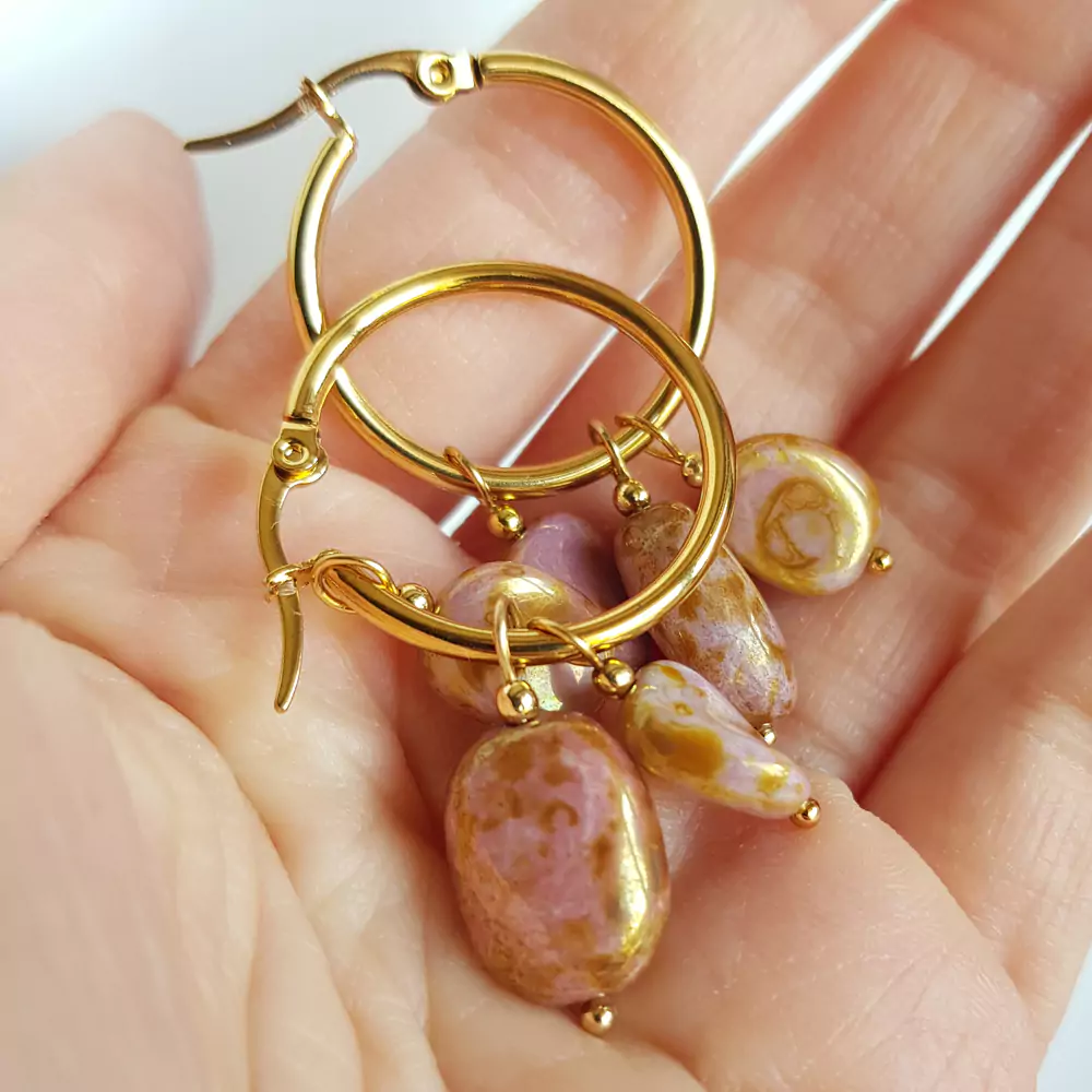 Verre kolczyki wiszące unikaty szkło, pastylki na złotych kółeczkach stal chirurgiczna