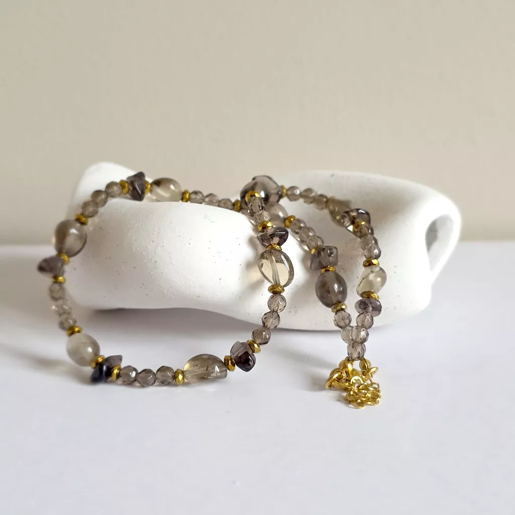Kwarc dymny wnosi energię uziemienia i równowagi. Pomaga uspokoić nadmiar emocji, wspiera koncentrację i przynosi poczucie stabilności.