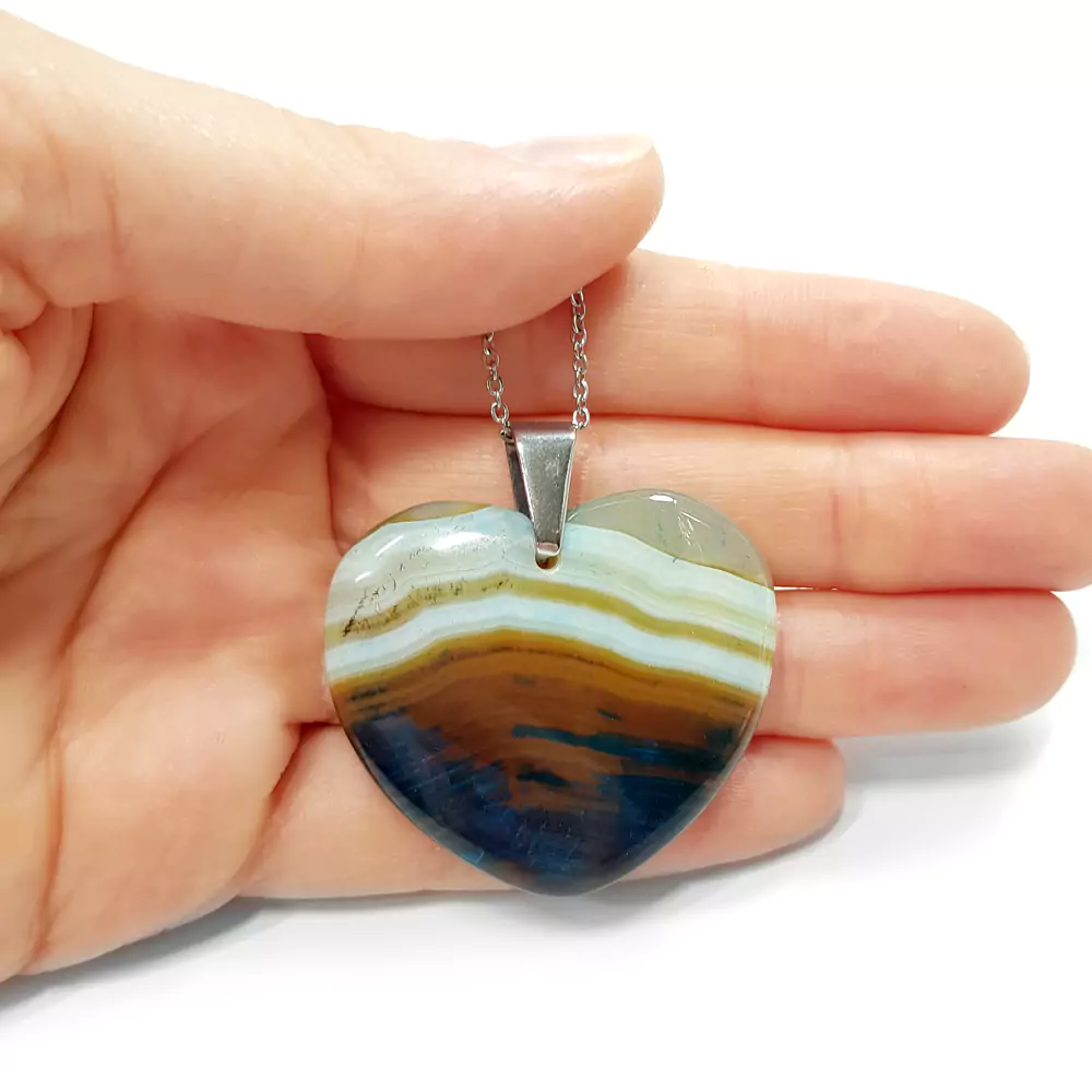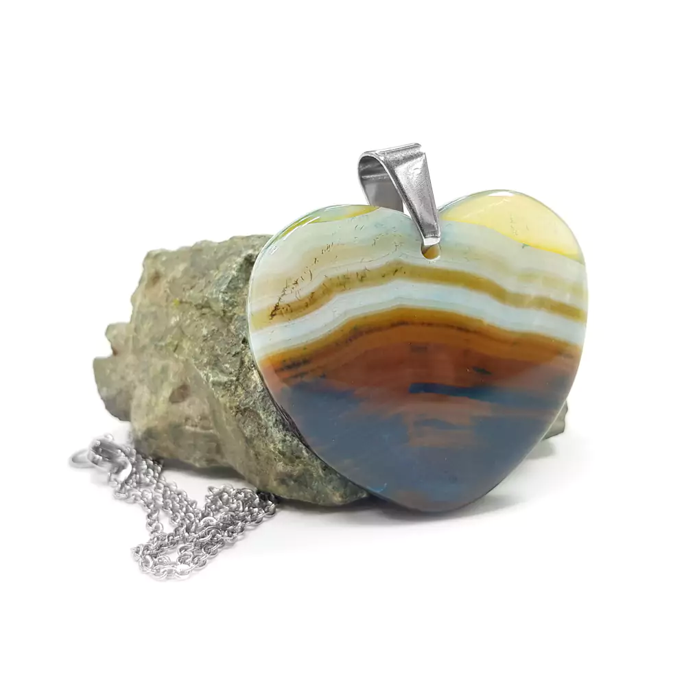 Naszyjnik unikat agat pasiasty serce na łańcuszku stal chirurgiczna