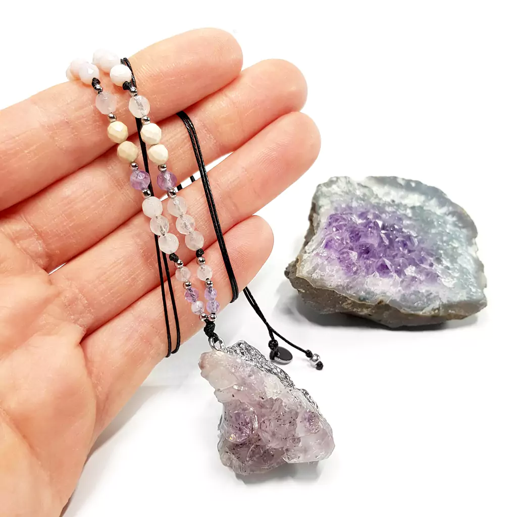 Ametyst leczy duszę i ciało. Pomaga wyciszyć umysł, złagodzić stres i złapać oddech w świecie pełnym zgiełku. To również kamień mądrości. Pomaga w rozwijaniu intuicji i odkrywaniu głębszych prawd życiowych, otwiera oczy na nowe możliwości. Chroni przed negatywną energią i przyciąga pozytywne wibracje.