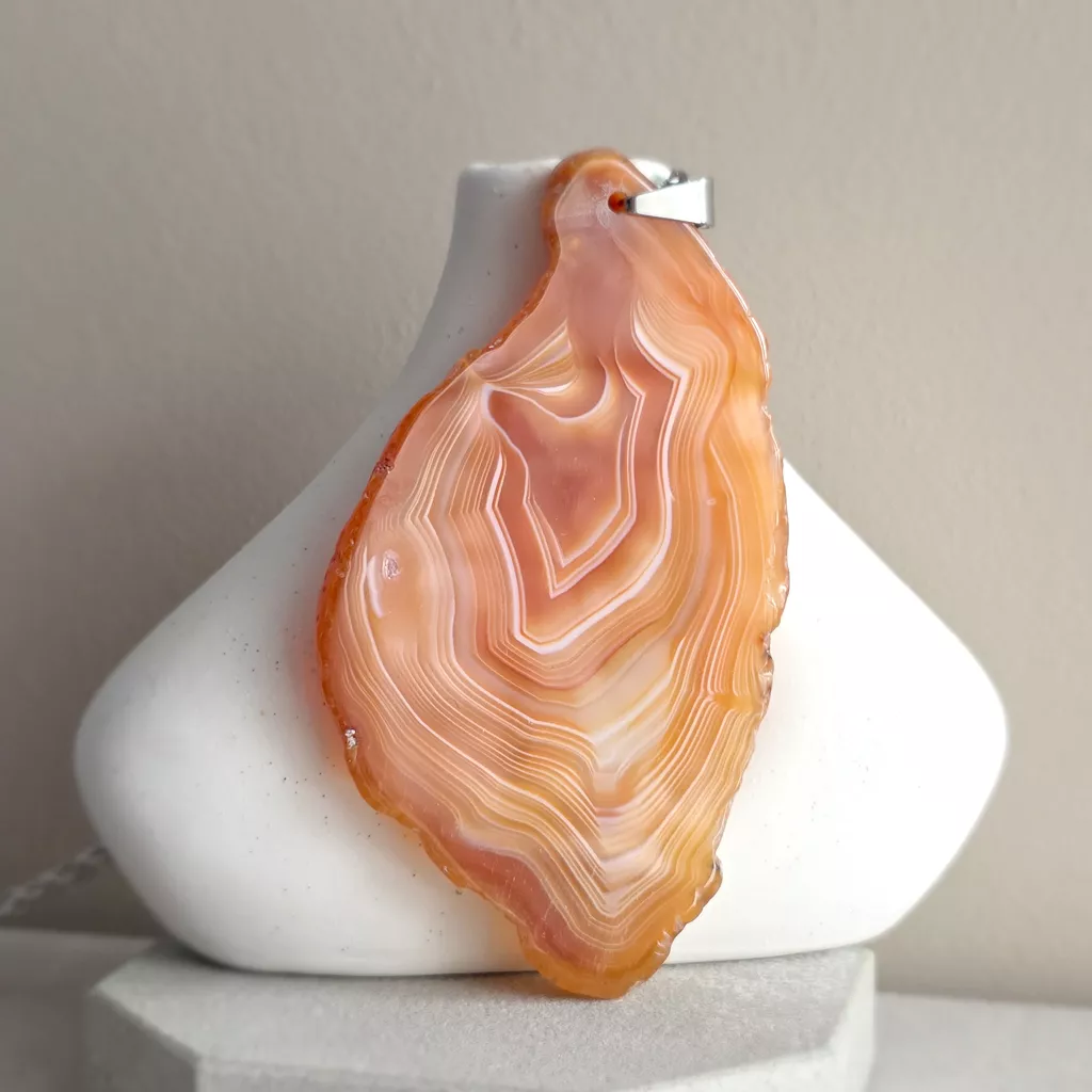 Agat pomarańczowy to kamień ciepłej, stabilnej energii, który subtelnie, ale konsekwentnie wzmacnia poczucie bezpieczeństwa i wewnętrznej równowagi. Jego soczysta, słoneczna barwa działa jak delikatny impuls do życia – dodaje optymizmu, motywacji i zdrowej radości z codziennych drobiazgów, jednocześnie nie rozpraszając, a pięknie uziemiając. To kamień, który wspiera emocjonalnie, pomaga oswoić lęki, uspokaja myśli i przywraca kontakt z własnym ciałem oraz potrzebami. Agat pomarańczowy sprzyja kreatywności, wzmacnia pewność siebie i poczucie własnej wartości, pomaga otworzyć się na przyjemność, kobiecość i naturalną ekspresję bez poczucia winy.
