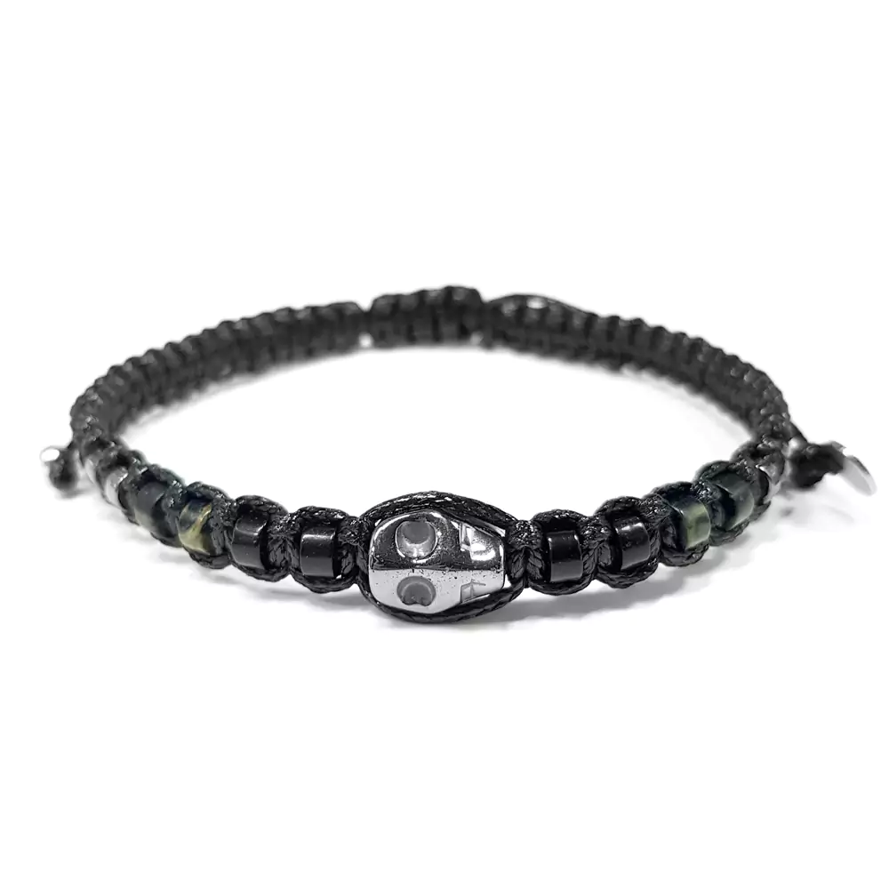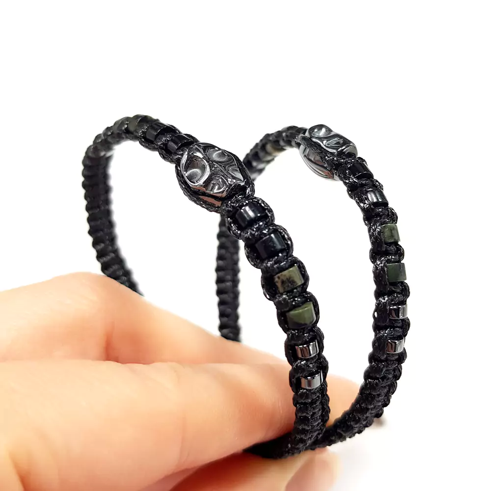 Męska bransoletka makramowa hematyt czaszka, onyks i jaspis kambaba