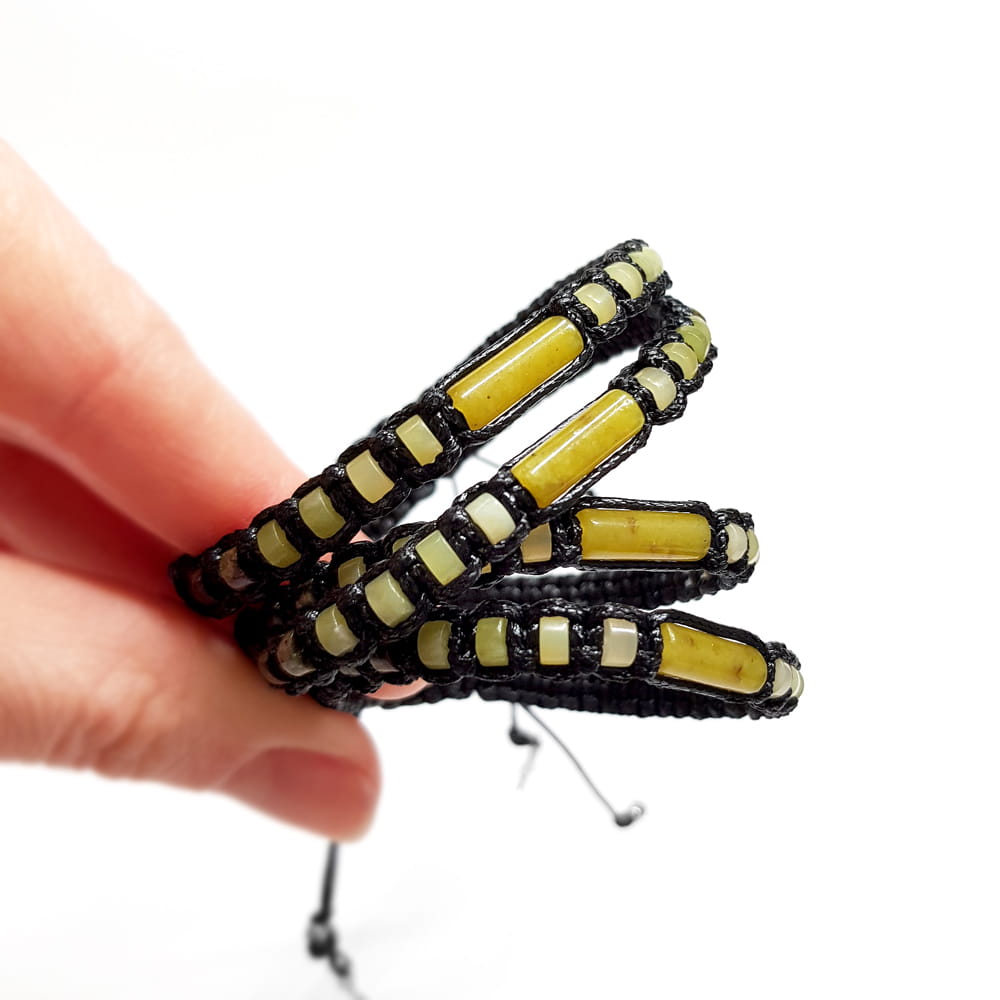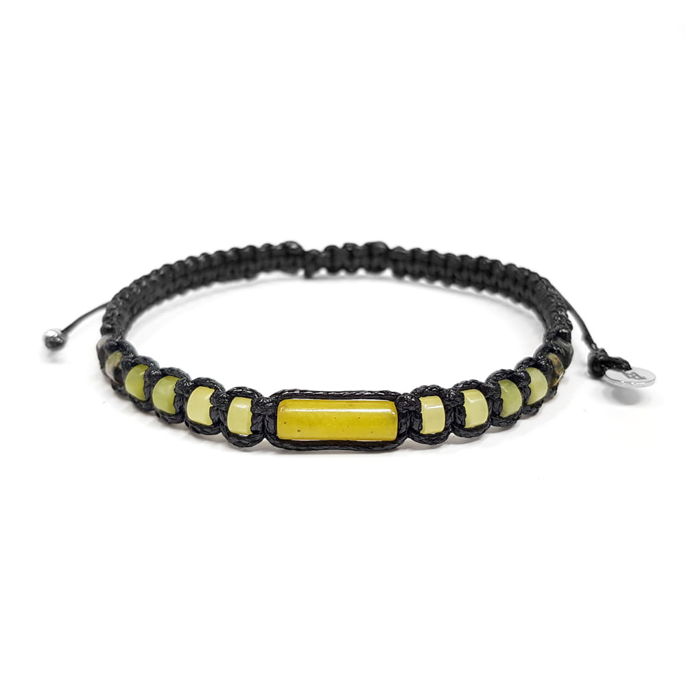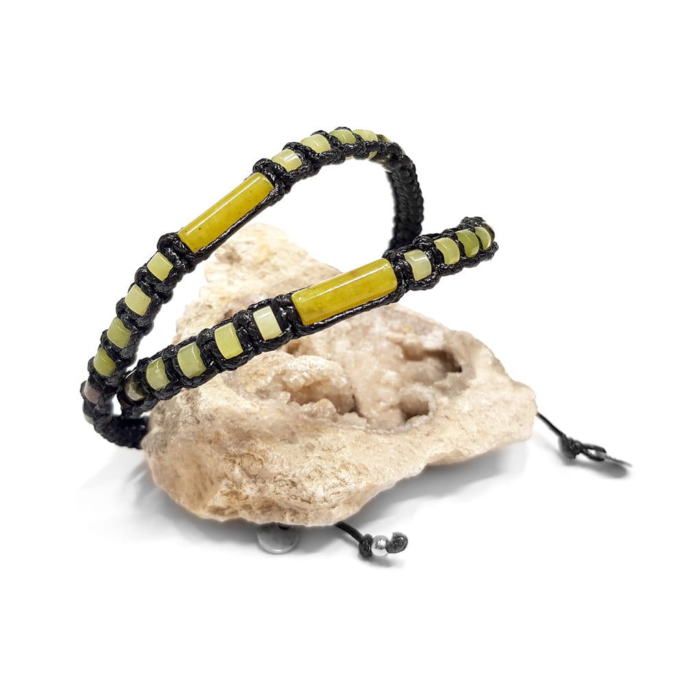 Męska bransoletka makramowa zielony jadeit i jaspis kambaba