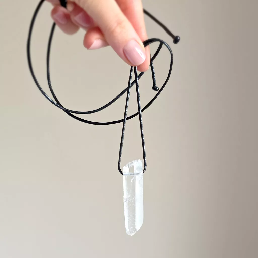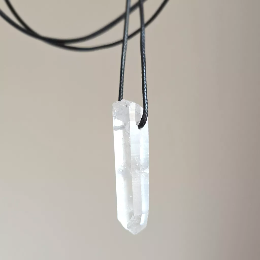 Naszyjnik kryształ górski surowy sopel na czarnym sznurku unikat v.2