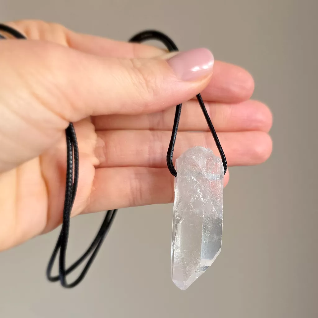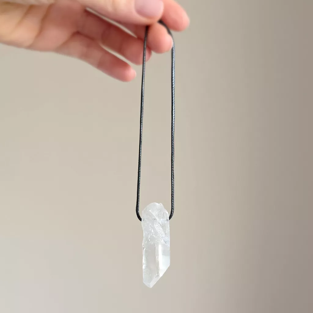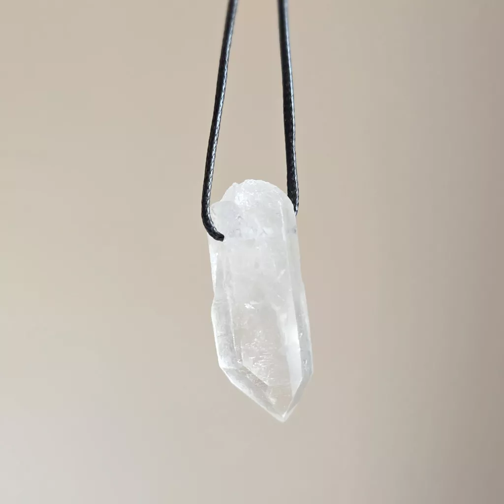 Naszyjnik kryształ górski surowy sopel na czarnym sznurku unikat v.4