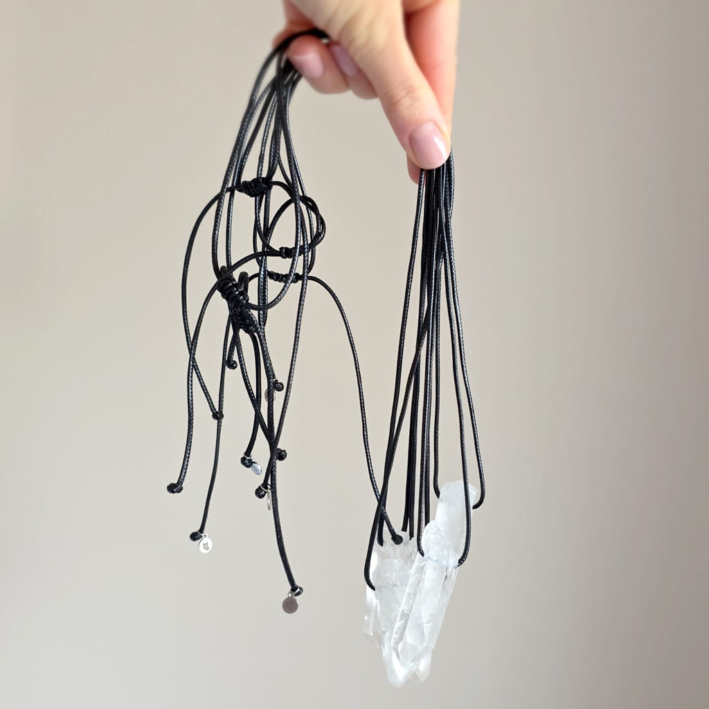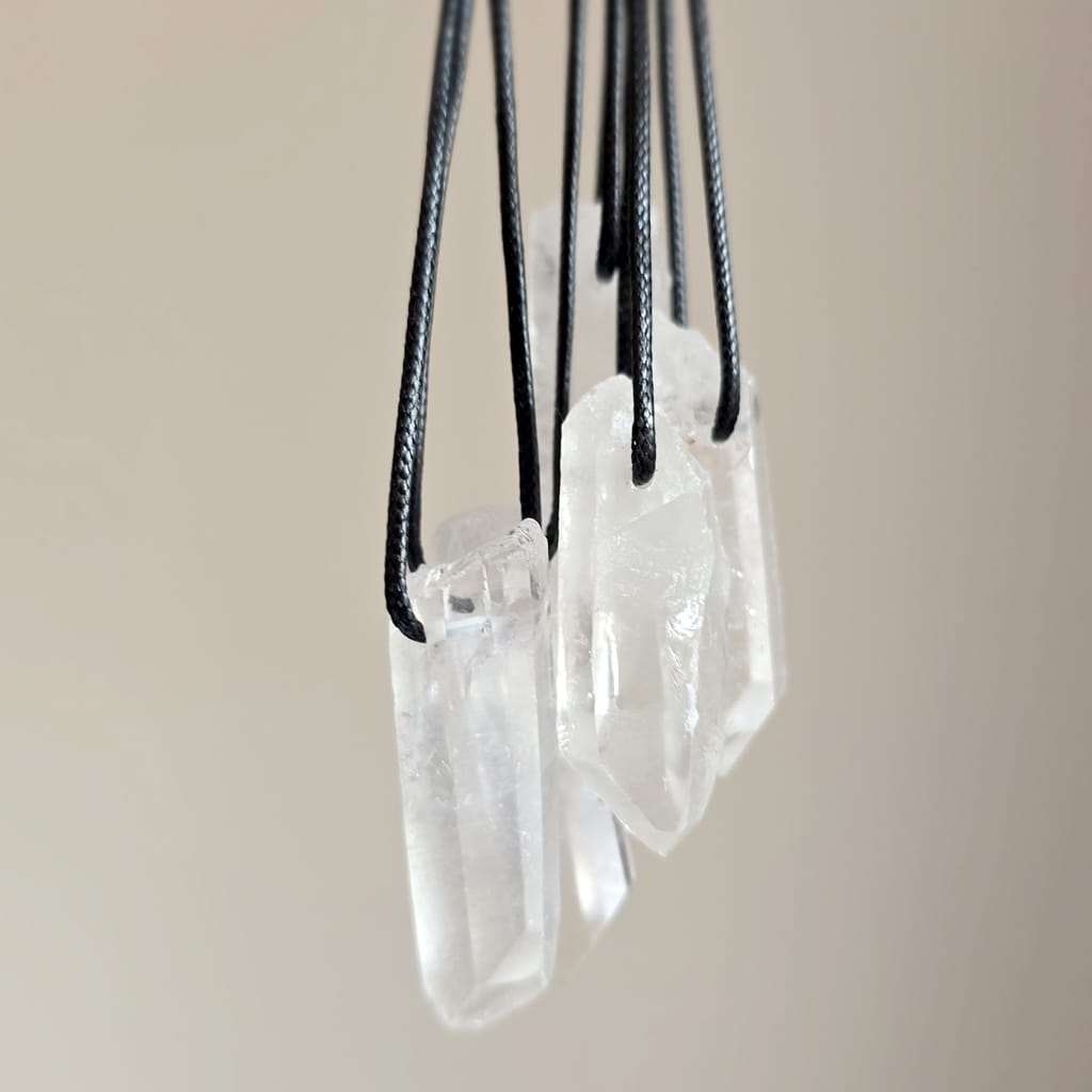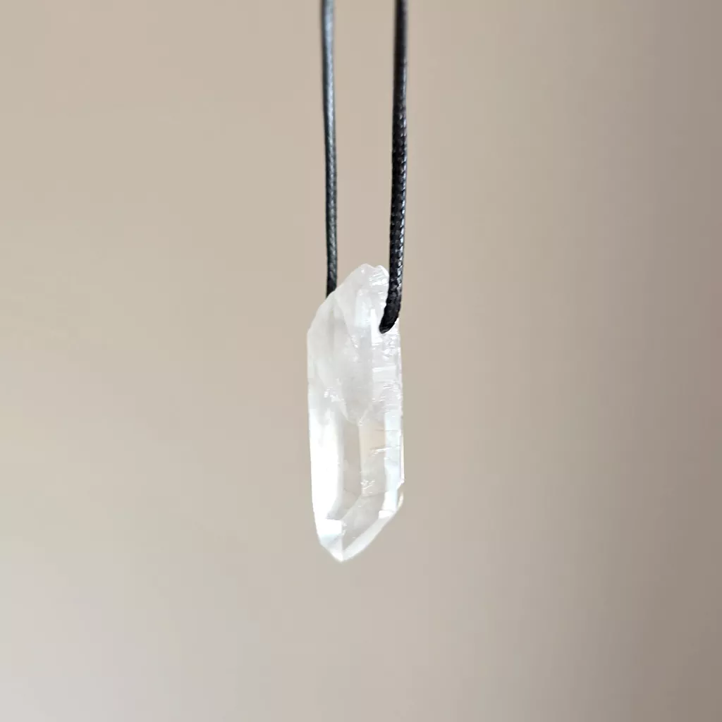 Naszyjnik kryształ górski surowy sopel na czarnym sznurku unikat v.4