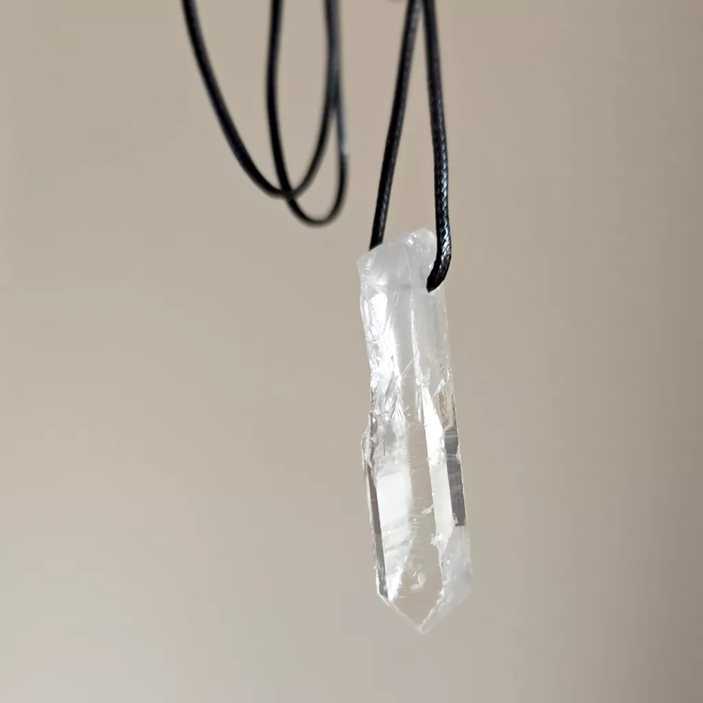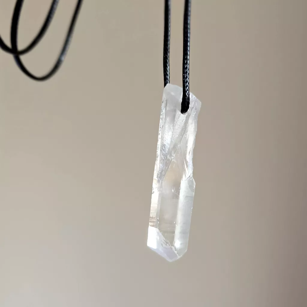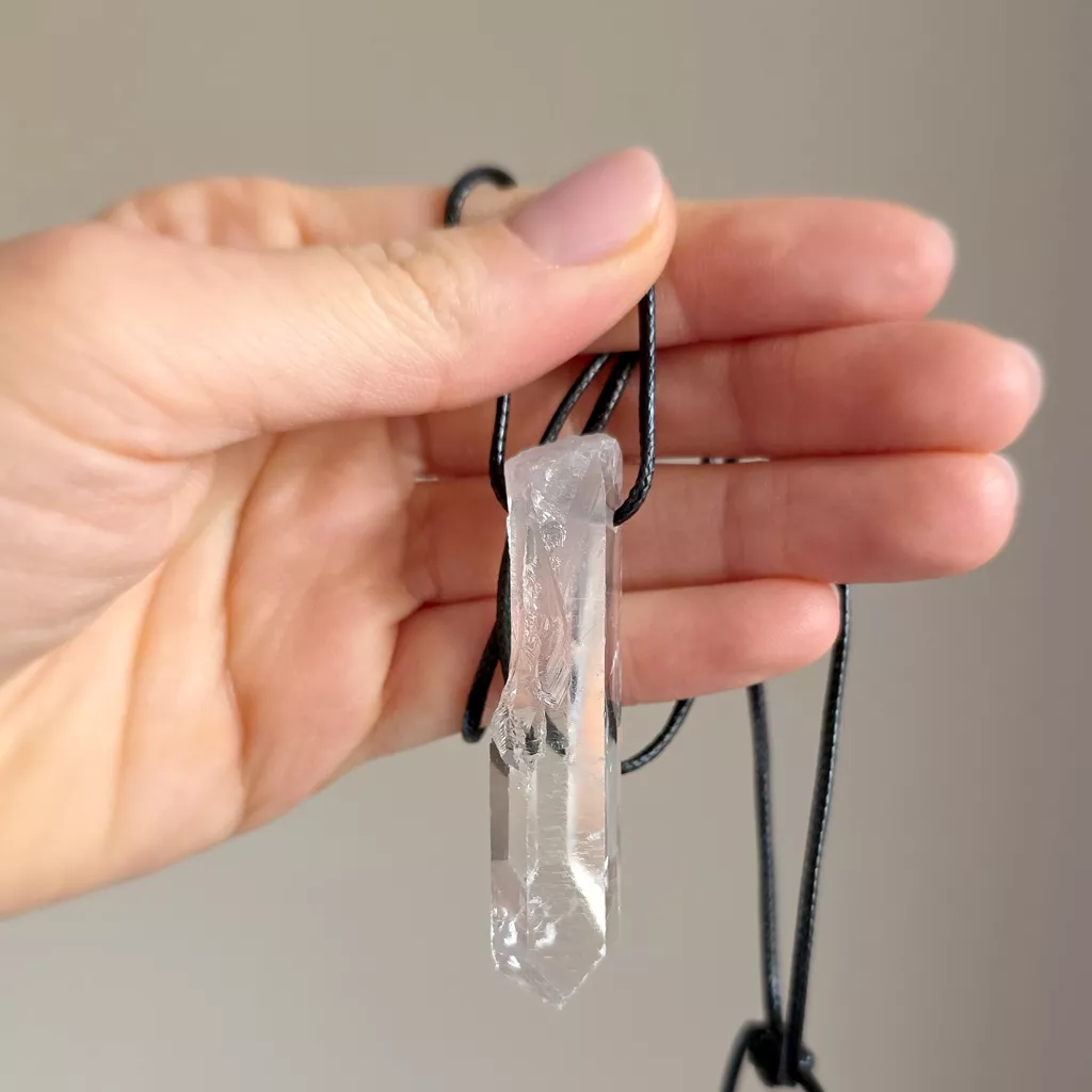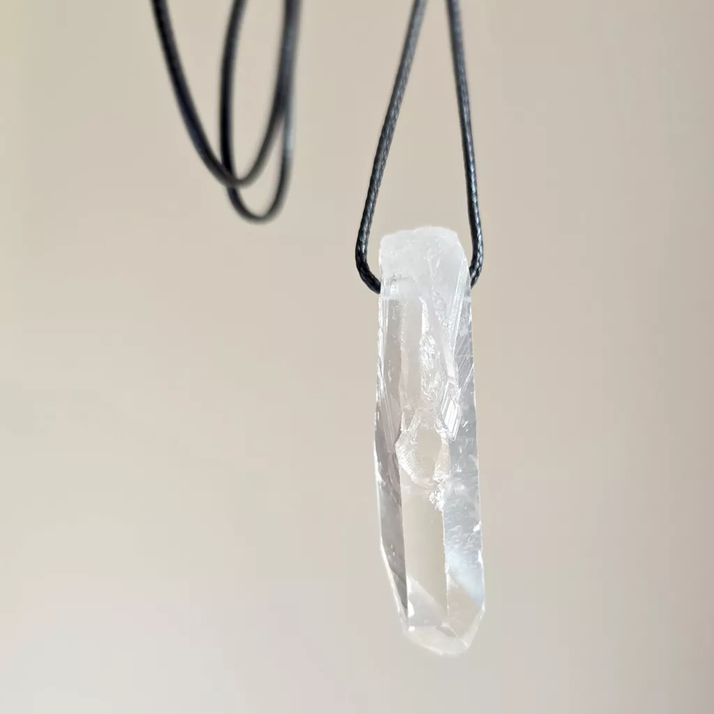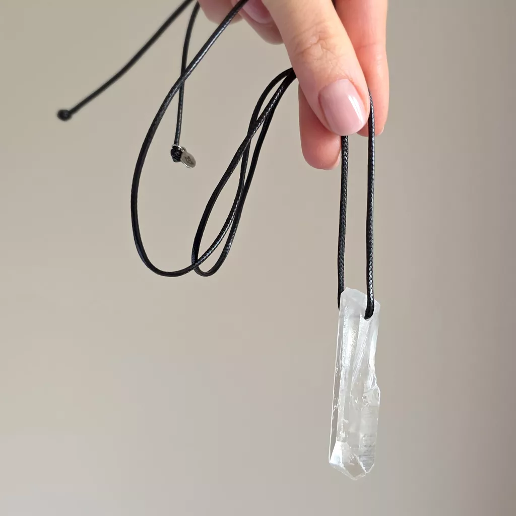 Naszyjnik kryształ górski surowy sopel na czarnym sznurku unikat v.5