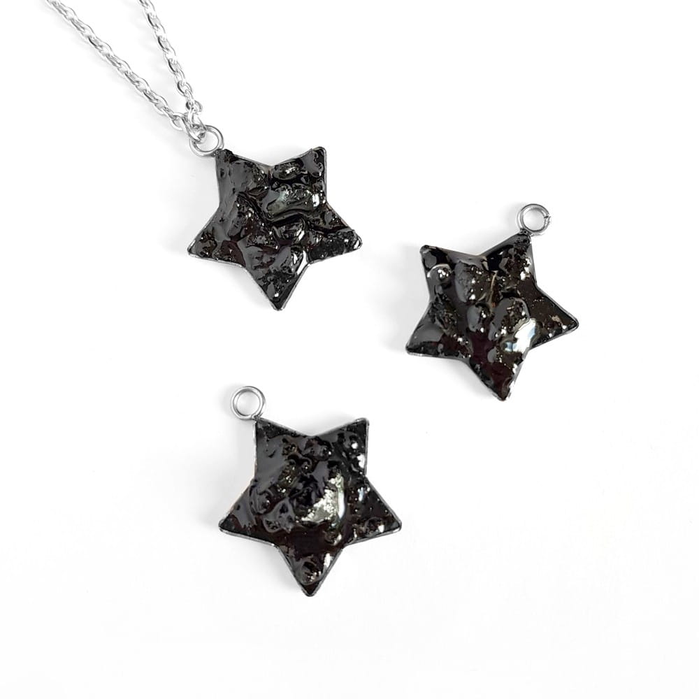 Naszyjnik czarny turmalin gwiazdka na srebrnym łańcuszku stal chirurgiczna Sparkles black