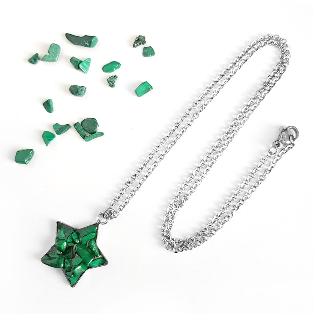 Naszyjnik malachit gwiazdka na srebrnym łańcuszku stal chirurgiczna Sparkles malachite