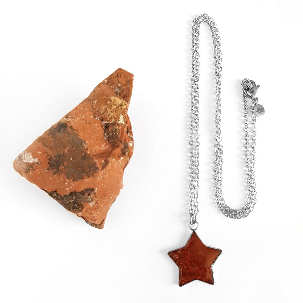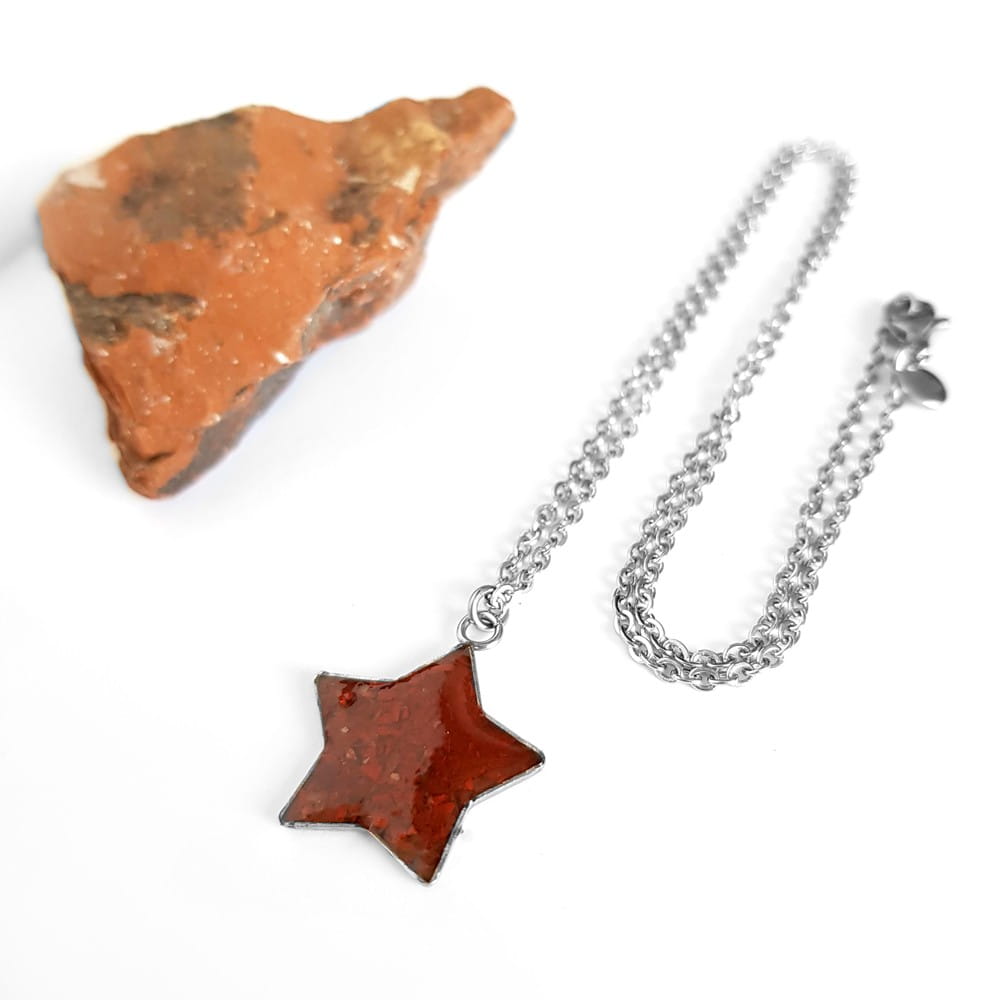 Naszyjnik czerwony jaspis gwiazdka na srebrnym łańcuszku stal chirurgiczna Sparkles red