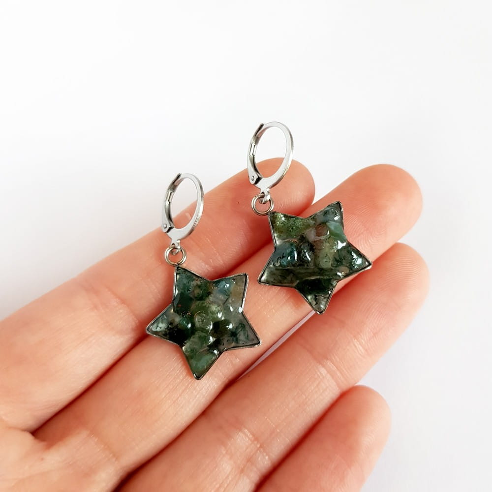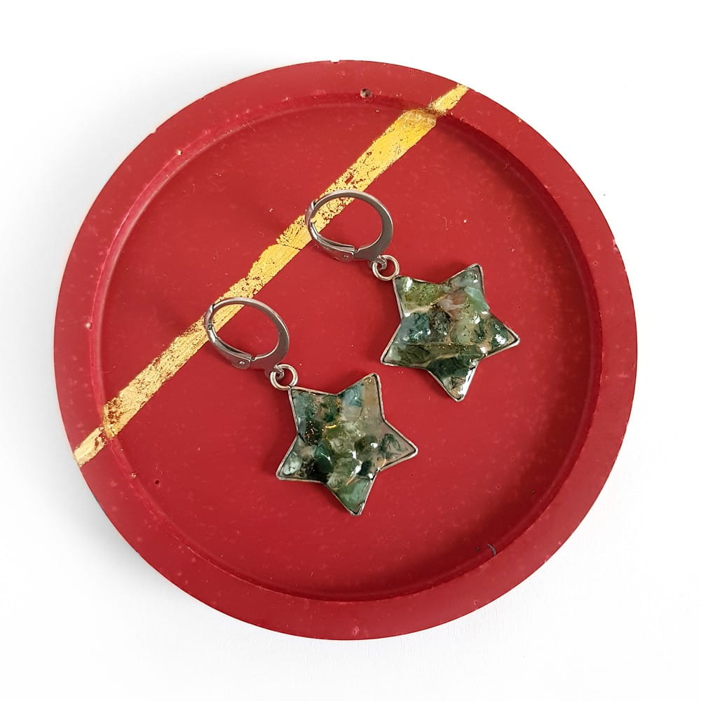 Kolczyki wiszące gwiazdki agat indyjski w żywicy stal chirurgiczna Sparkles forrest