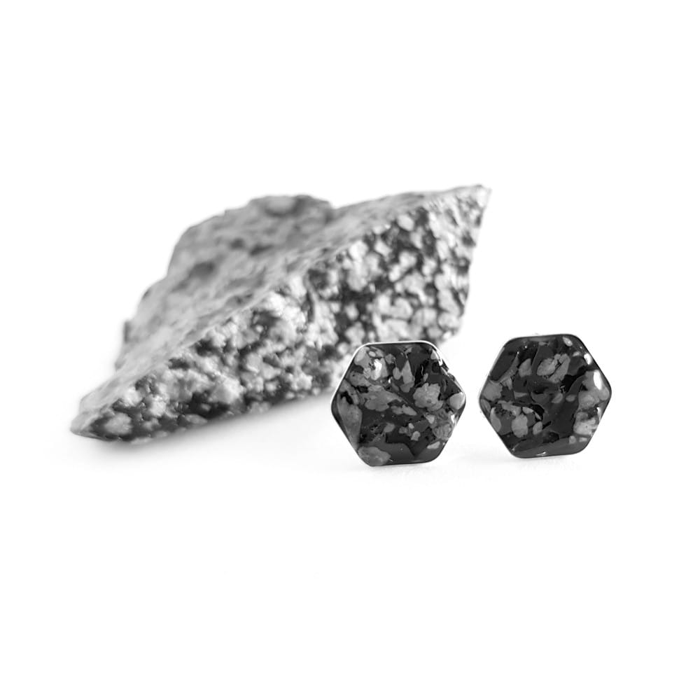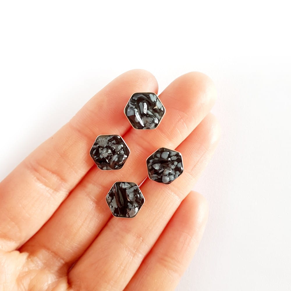 Kolczyki sztyfty heksagony obsydian śnieżny w żywicy srebro p.925 Sparkles snowy