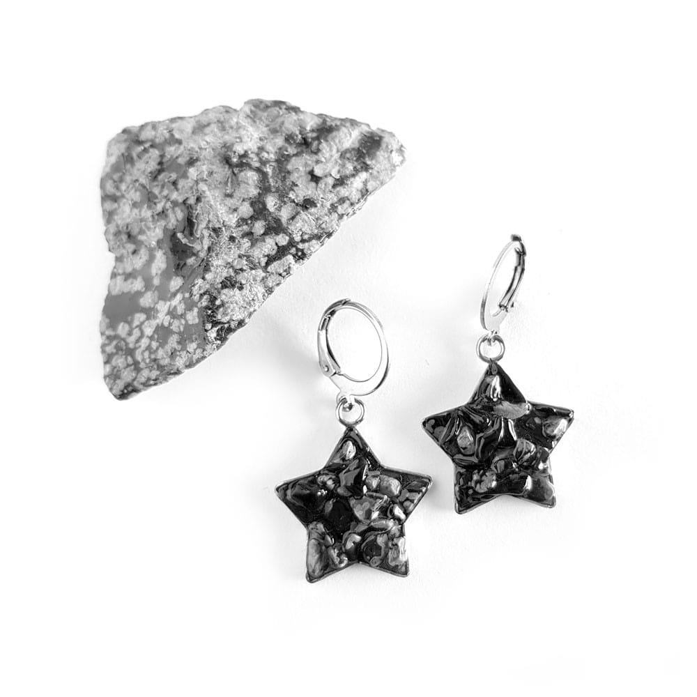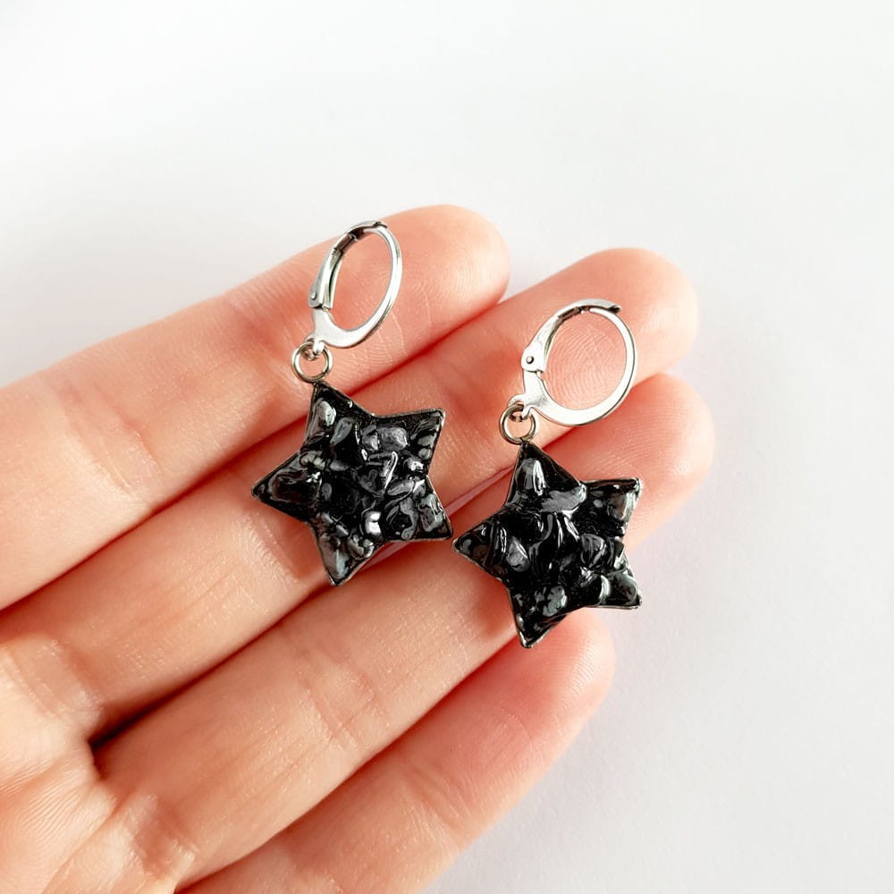 Kolczyki wiszące gwiazdki obsydian śnieżny w żywicy stal chirurgiczna Sparkles snowy