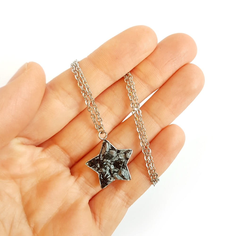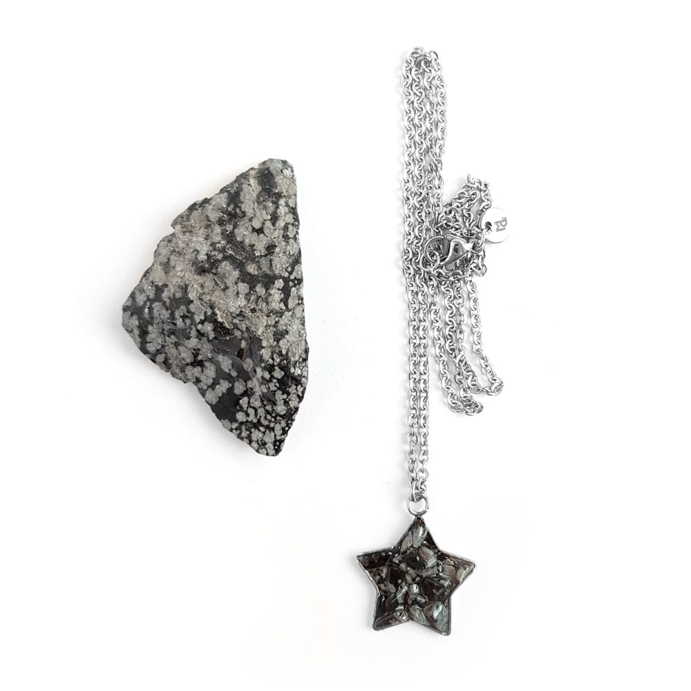 Naszyjnik obsydian śniezny gwiazdka na srebrnym łańcuszku stal chirurgiczna Sparkles snowy