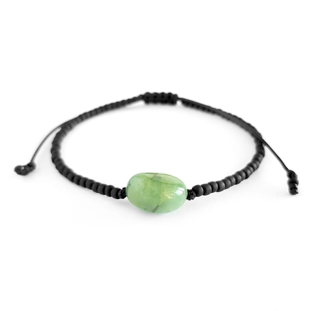 Bransoletka została wykonana z bryłki awenturynu. Podstawę stanowią matowe, szklane koraliki i mocny, nylonowy sznurek.