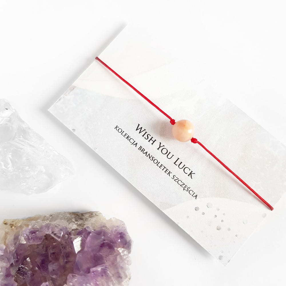 WishYouLuck różowy awenturyn bransoletka szczęścia na czerwonym sznurku