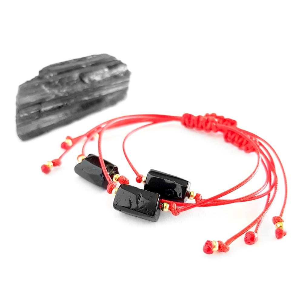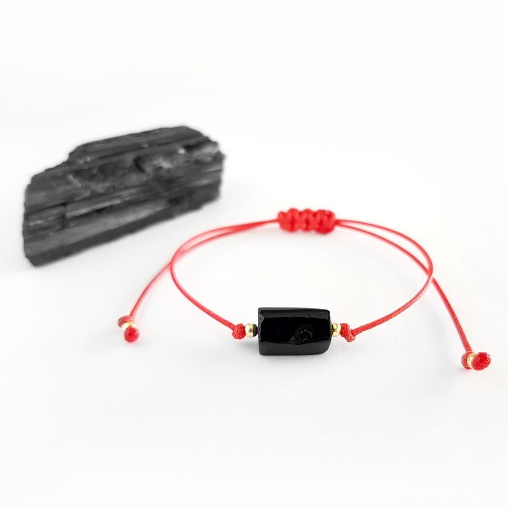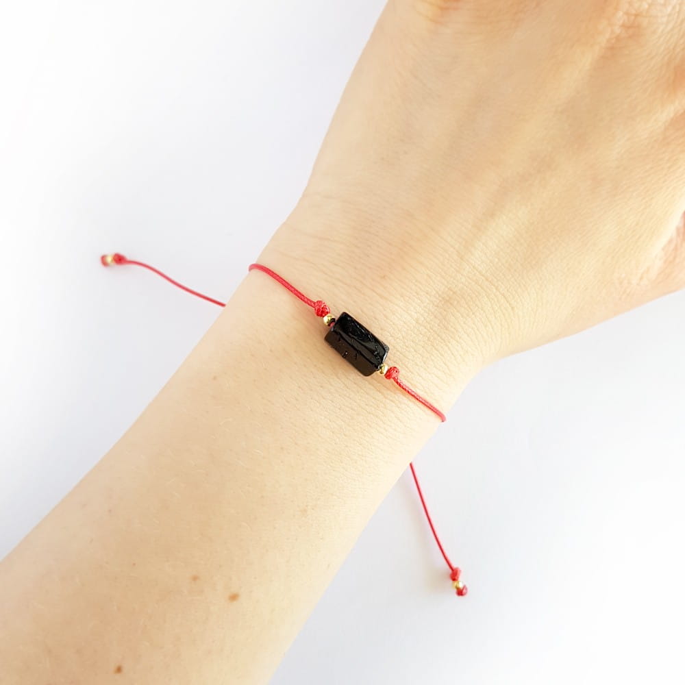 WishYouLuck czarny turmalin polerowana bryłka i pozłacane srebro p.925 bransoletka szczęścia na czerwonym sznurku