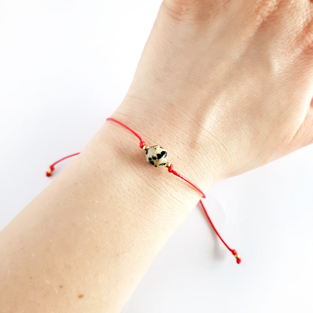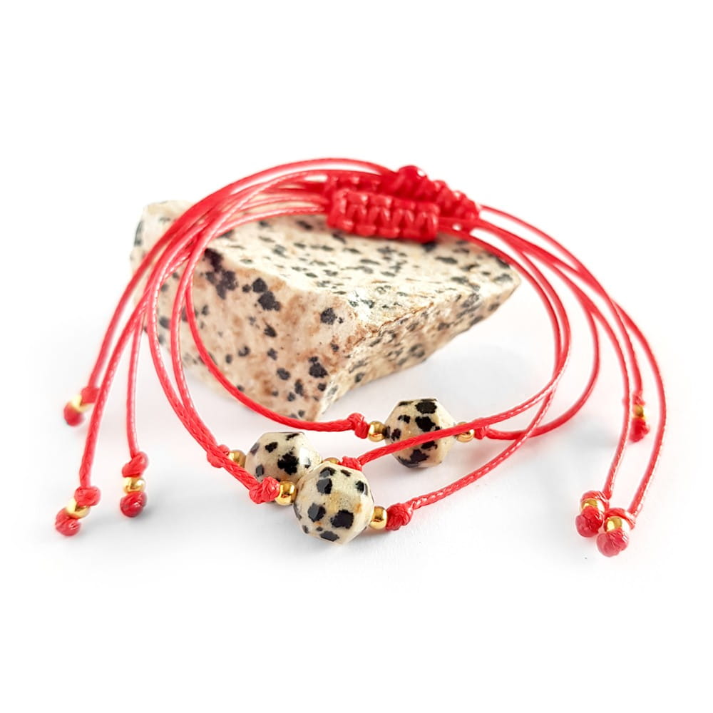 WishYouLuck jaspis dalmatyńczyk bryłka i pozłacane srebro p.925 bransoletka szczęścia na czerwonym sznurku