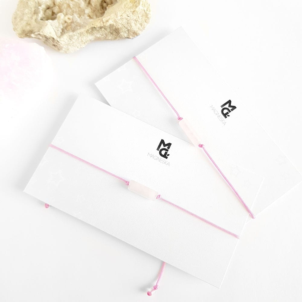 Bransoletka kwarc różowy patyczek na różowym sznurku Rose stick