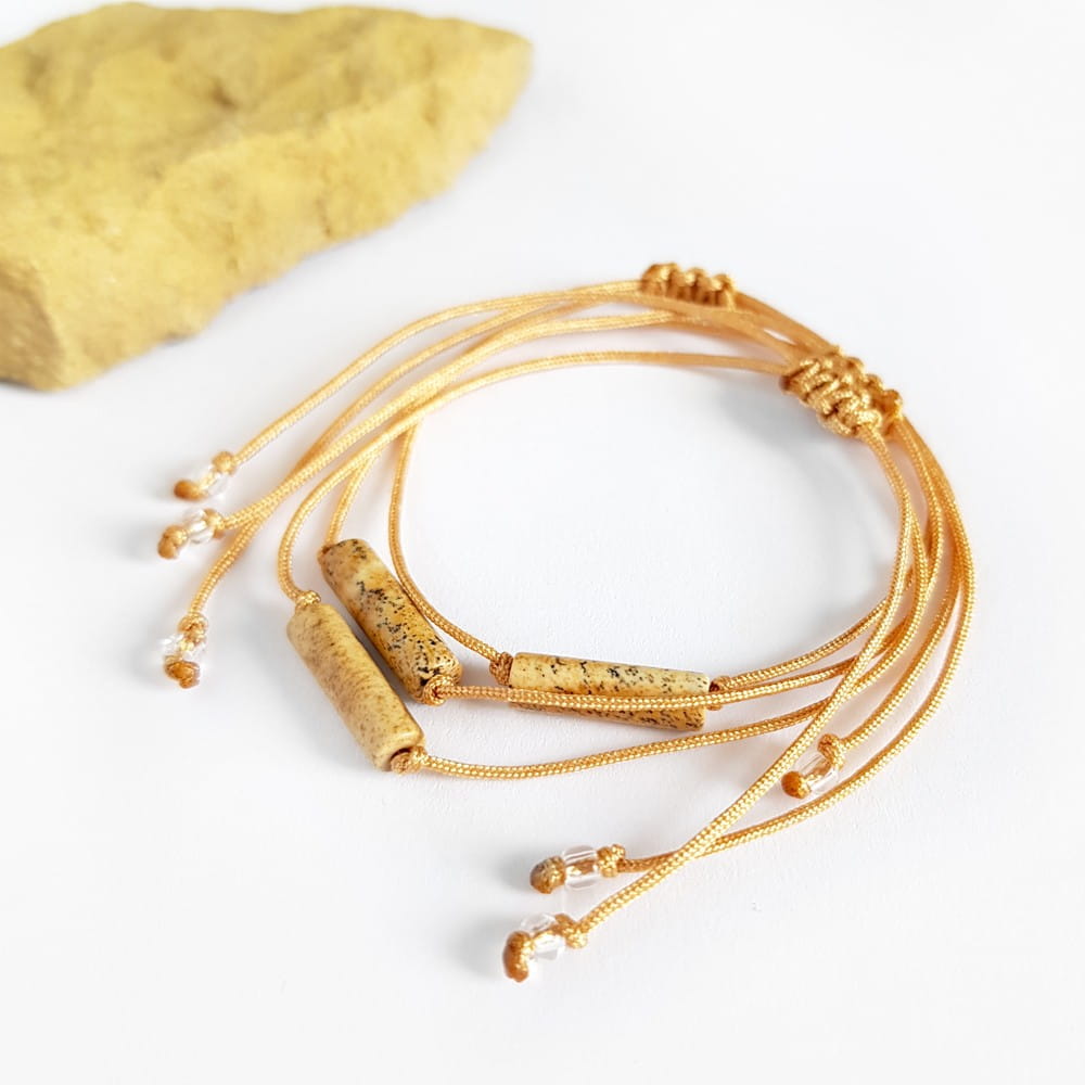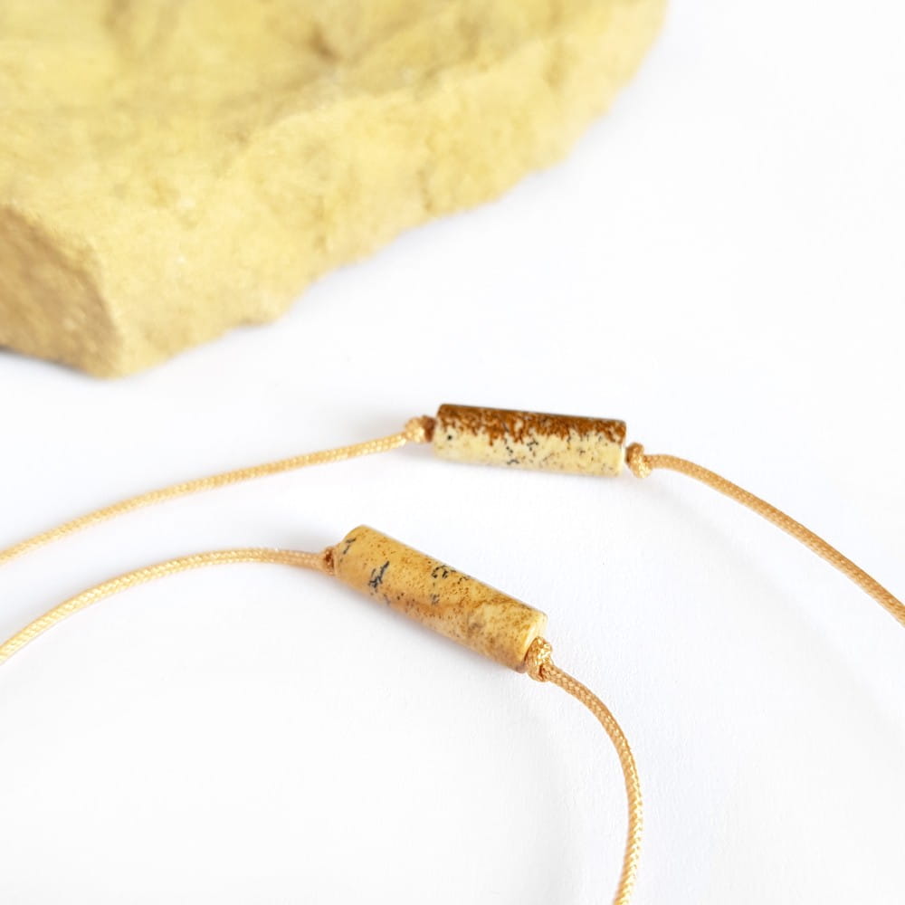 Bransoletka jaspis pejzażowy patyczek na karmelowym sznurku Sand stick