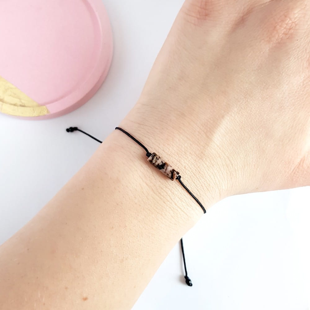 Bransoletka rodonit patyczek na czarnym sznurku Dirty pink stick
