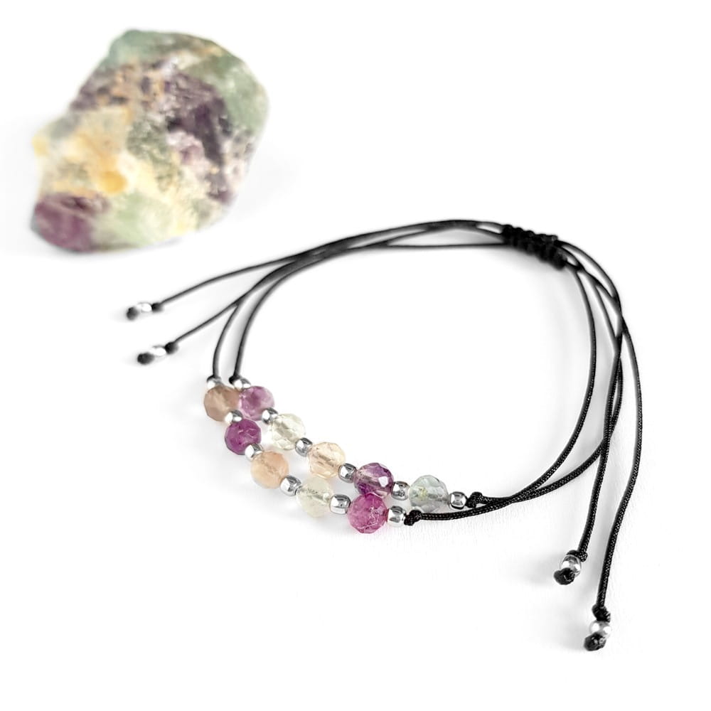 Bransoletka fluoryt kuleczki na czarnym sznurku