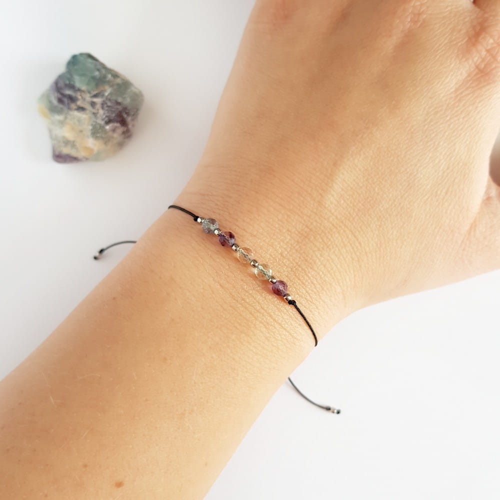 Bransoletka wykonana z kamieni naturalnych - fluorytu tęczowego, drobnych kuleczek ze stali chirurgicznej i nylonowego sznureczka.