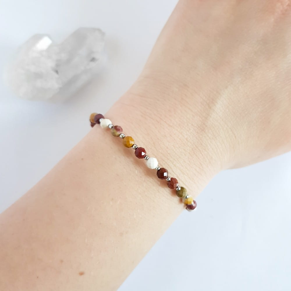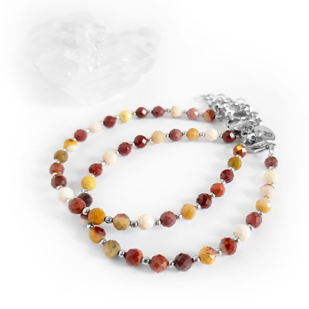 Bransoletka wykonana z 4 mm fasetowanych kuleczek kamienia naturalnego - mokaitu. Pozostałe elementy bransoletki stanowi stal chirurgiczna 316 L.