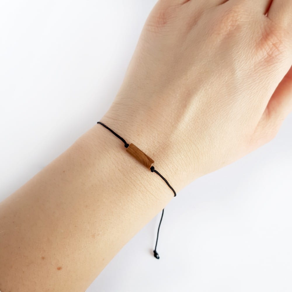 Bransoletka jaspis drzewny patyczek na czarnym sznurku Wood stick