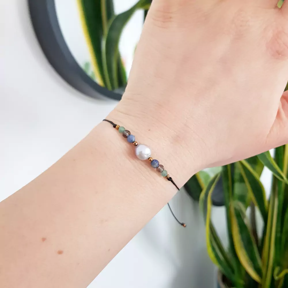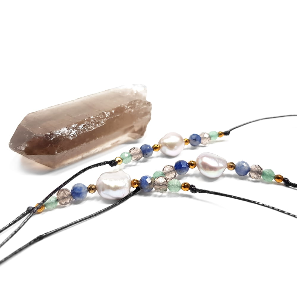 Bransoletka awenturyn, sodalit, kwarc dymny i perła Zodiac Strzelec